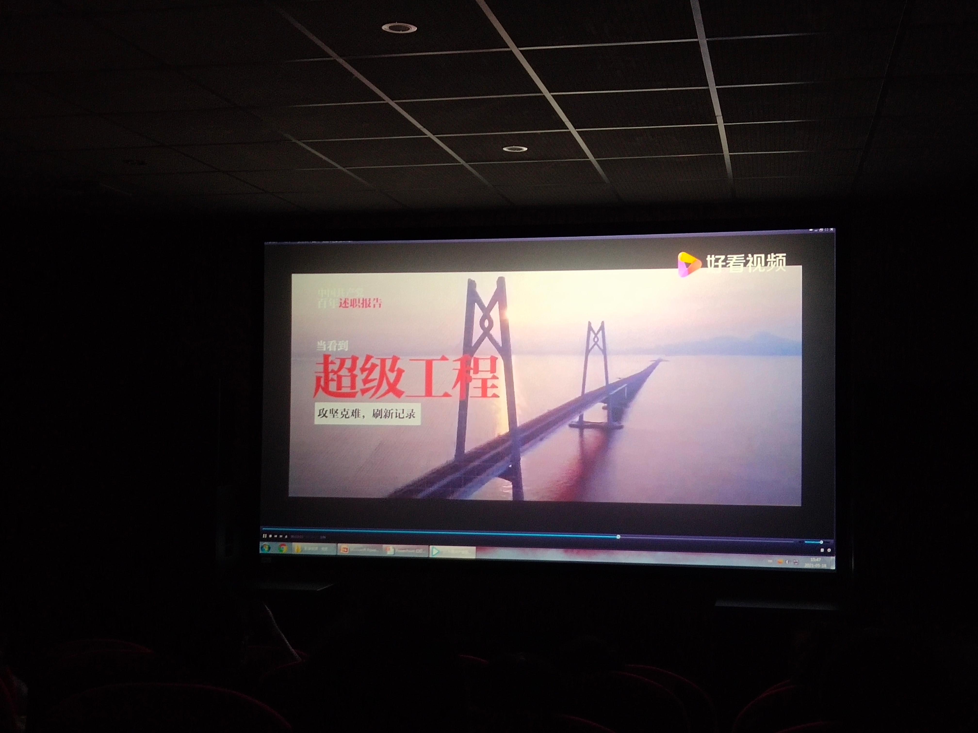 此次党课采取“影像+讲解”的形式,在william威廉亚洲3D小剧场开讲。胡小坤同志为大家呈现了她精心挑选的十二个红色影像资料,这些红色影像资料既有史料丰富的文献记录片,有极富渲染力、感染力的宣传片,还有饱含深情的诗朗诵、红歌,每个影像既能独立成篇,又浑然一体,集中、深刻的展现了中国共产党带领中华民族走上独立之路、自强之路、复兴之路的伟大征程。