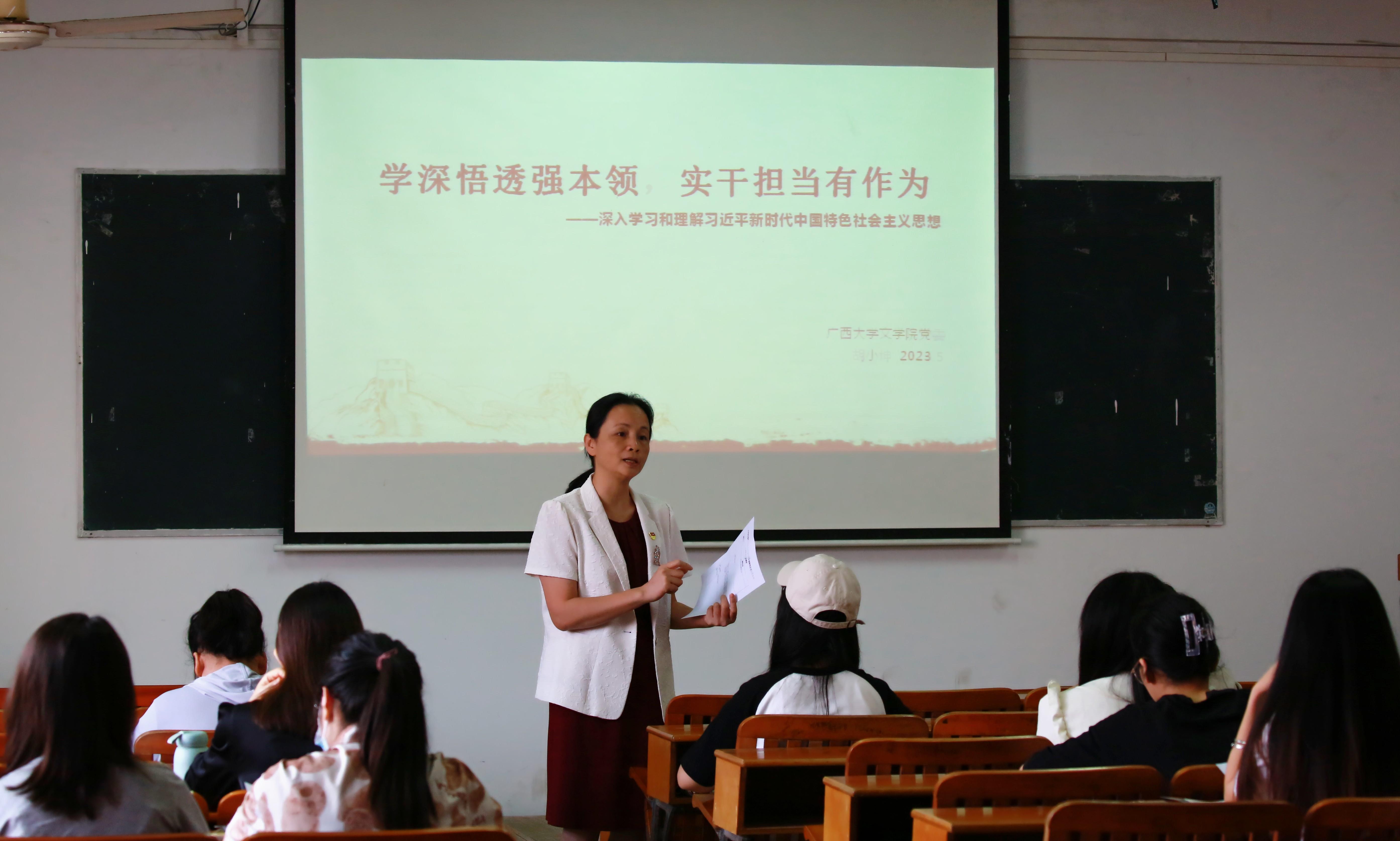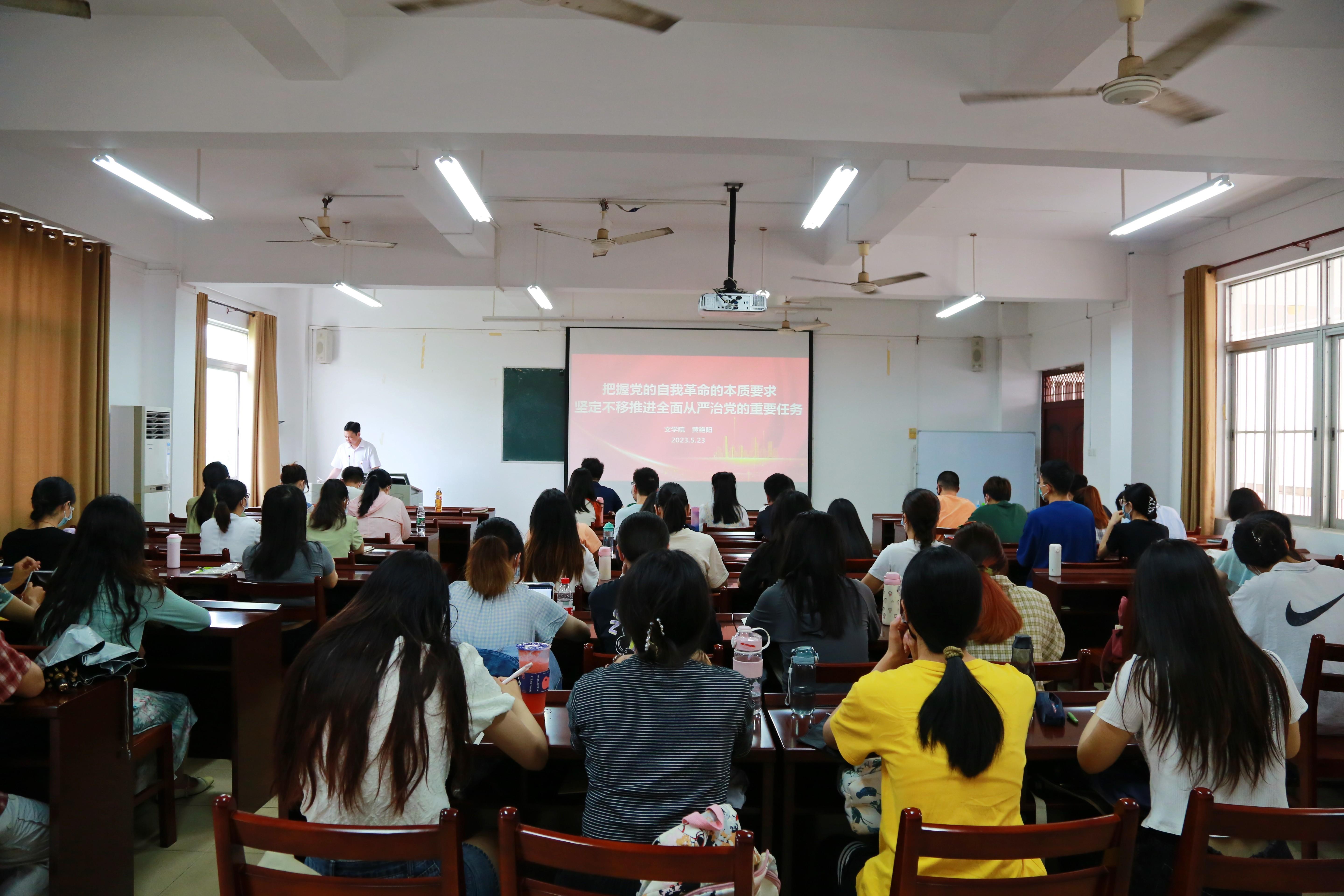 党委书记胡小坤同志以《学深悟透强本领,实干担当有作为——深入学习和理解习近平新时代中国特色社会主义思想》为题,为教工第一党支部、汉教本科党支部毕业班党员、文学研究生党支部讲专题党课。党委副书记、经理孙瑞同志以《学好习近平新时代中国特色社会主义思想,增强党性修养》为题,为语言学研究生党支部专题党课。党委副书记、纪委书记郭爱涛同志《学习贯彻习近平新时代中国特色社会主义思想,做新时代忠诚干净担当好党员》为题,为文学本科一支部、汉教研究生二支部讲专题党课。党委委员、副经理田春来同志以《研究生党员如何发挥模范带头作用》为题,为汉教研究生一支部讲专题党课。党委委员、副经理阳静同志以《以时代精神激活中华优秀传统文化的生命力》为题,为教工第二党支部讲专题党课。副经理黄艳阳同志以《把握党的自我革命的本质要求,坚定不移推进全面从严治党的重要任务》为题,为文学本科二支部、汉教本科党支部非毕业班党员讲专题党课。