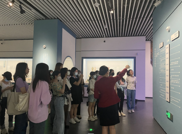 在讲解员的带领下,同学们分批次通过“广西古代文明陈列”、“烽火南疆——广西近现代革命史陈列” 、“合浦启航——广西汉代海上丝绸之路”、“釉彩斑斓——馆藏瓷器陈列”与“匠心器韵——馆藏工艺珍品陈列”等专题展览进行了现场学习,从多个角度了解广西在中华文明多元一体格局中的发展之道。文物在声光电等现代科技元素的配合下,实现 “转”起来、“智”起来和“动”起来,令人叹为观止,印象深刻。