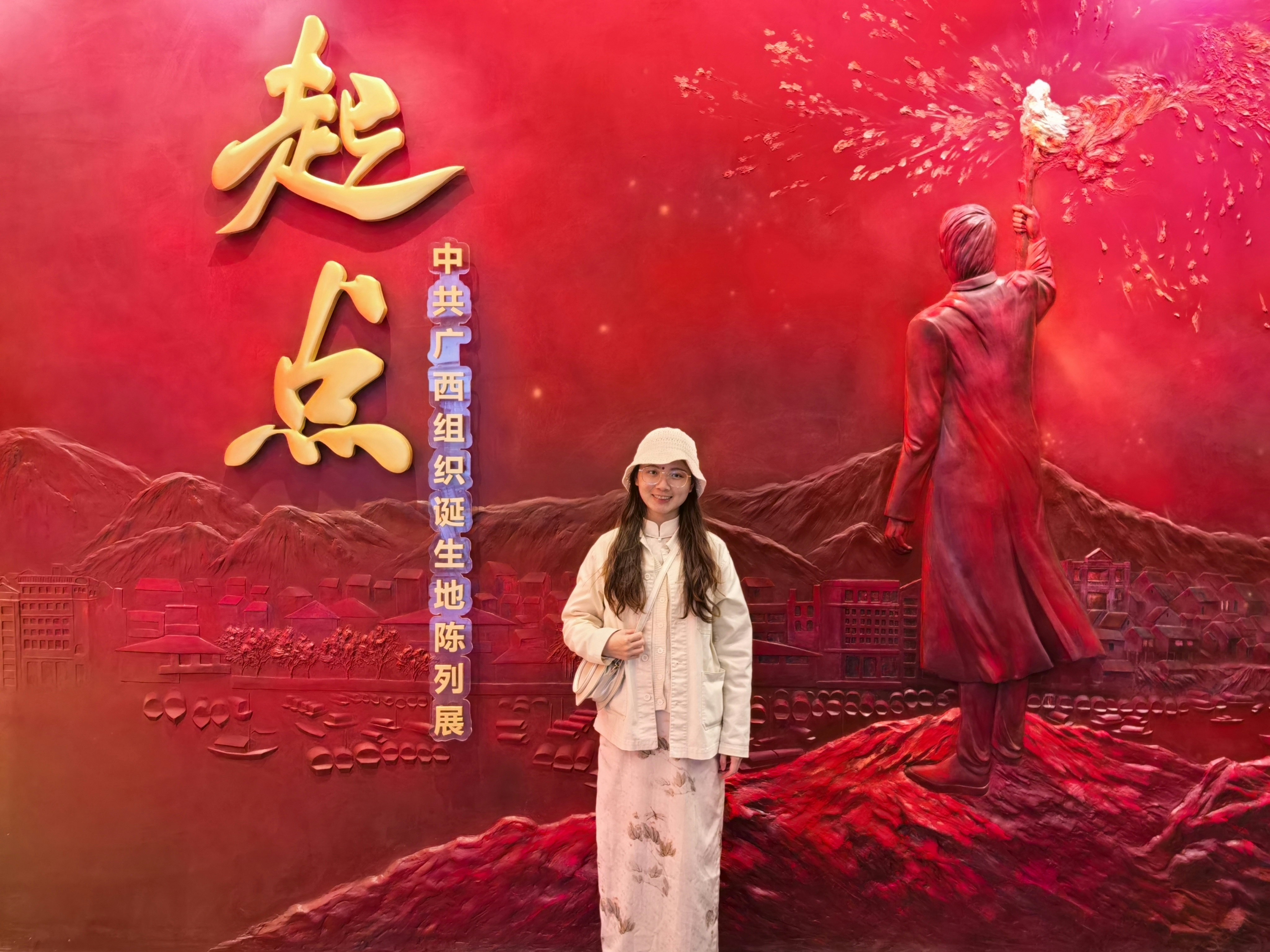 黄倩洁同志参观中共梧州地委·广西特委旧址陈列馆。馆内展品展现革命岁月,“起点”二字令她印象深刻。她认为青年党员应追念先辈事迹,传承红色精神,在学习中提升自我,不负时代使命。