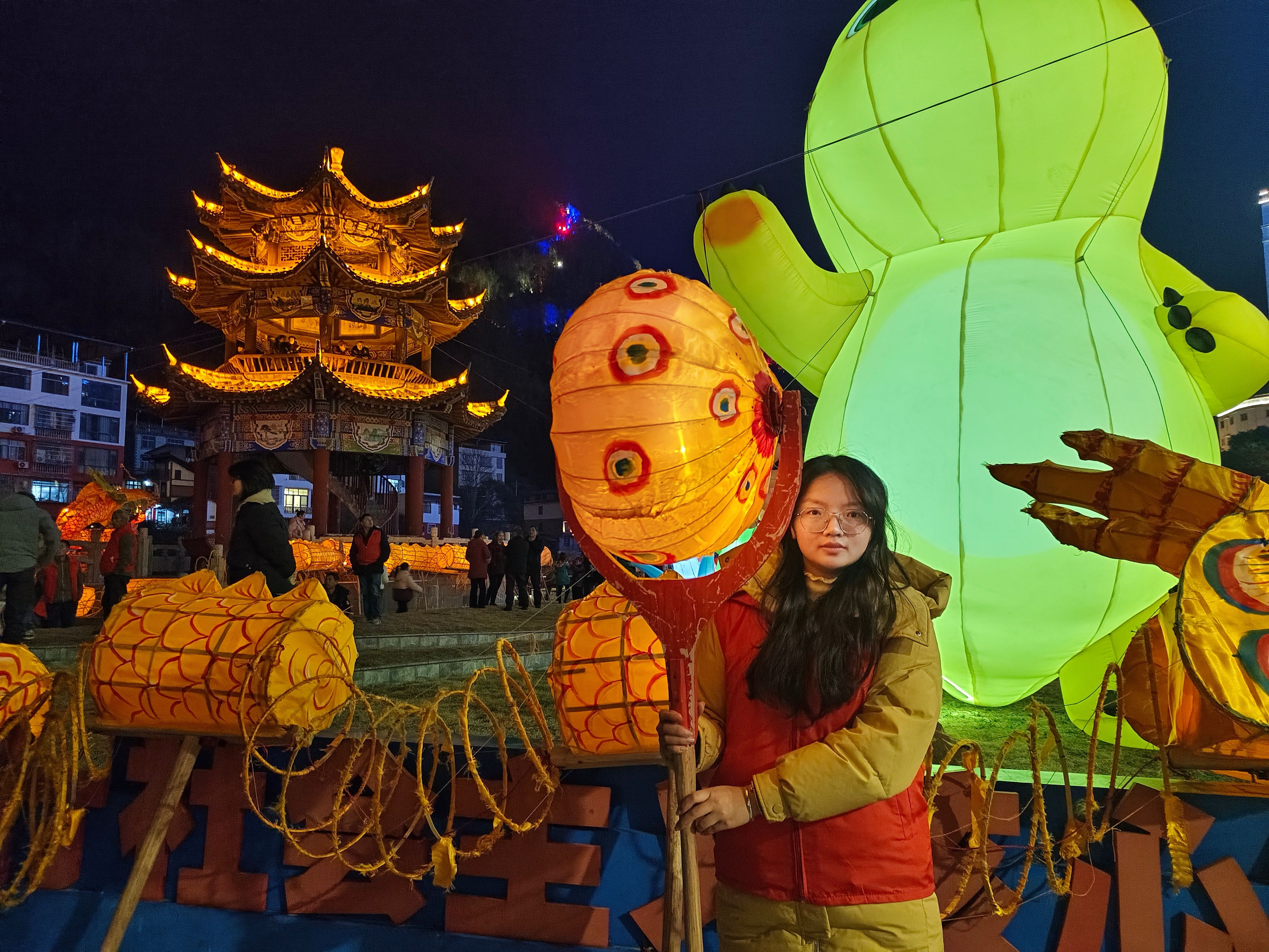 马俪榕同志在家乡观看民俗表演,舞龙灯中龙头、龙身、龙尾默契配合,党旗引航如龙首领行,党员躬身力行凝聚群众之力。她决心以奋进之姿,立足本职、服务群众,让党员初心使命在传承创新中发光。