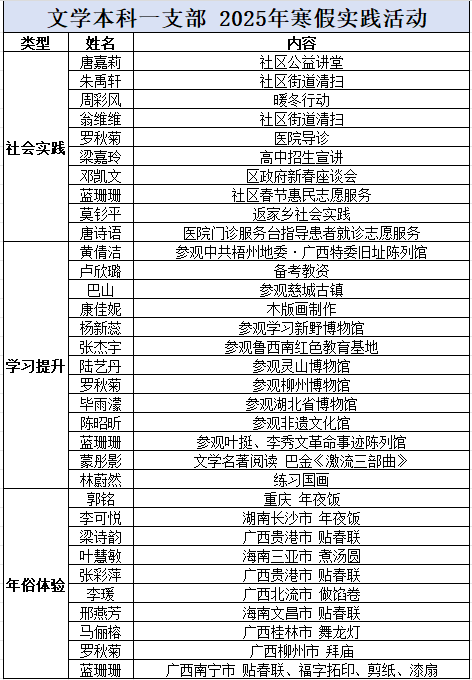 在此次寒假实践活动中,文学本科第一党支部的党员们于奉献中成长,于学习中提升,积极弘扬中华优秀传统文化,坚定了文化自信,充分展现了新时代党员的责任担当。