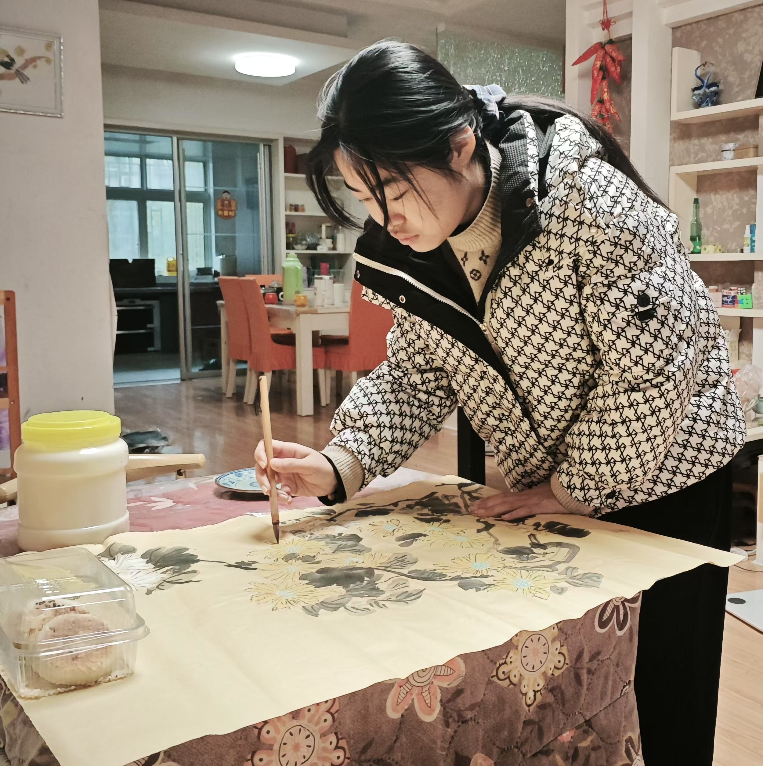 林蔚然同志利用假期学习国画。在学习中,她从墨色浓淡里感知层次感与韵律美,在临摹经典时体悟国画蕴含的哲学思想和文化内涵。她下定决心要让国画在新时代的舞台上熠熠生辉。