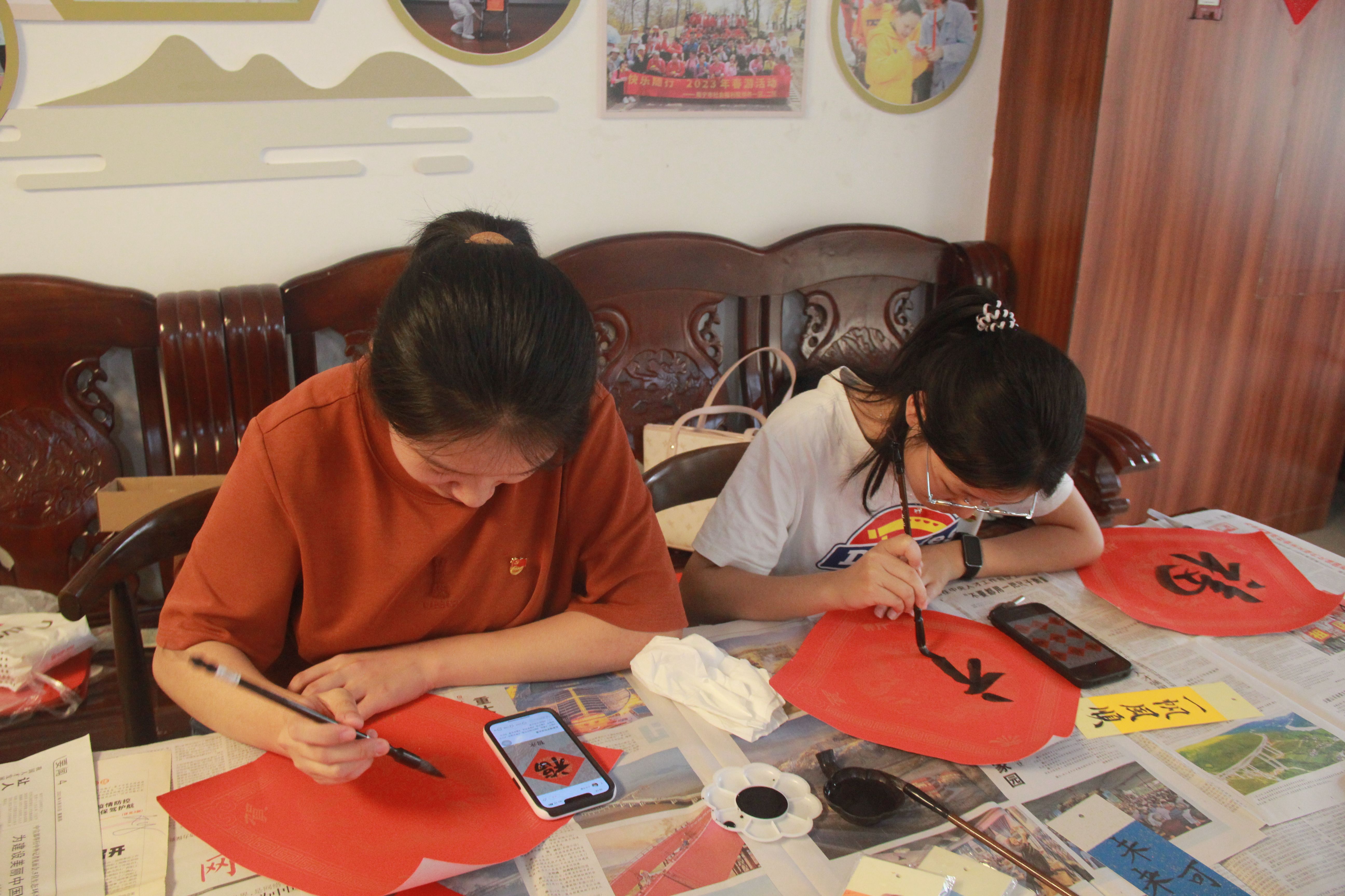 活动中,党员们分组带领老人和孩子们体验非遗文化。漆扇小组以漆为墨,染出古风团扇;扭扭棒小组巧手折花,欢声笑语不断;剪纸小组剪出吉祥图案,传递美好祝福;书画小组挥毫泼墨,展现传统艺术之美;摄影小组用镜头定格,留下难忘瞬间。活动尾声,全体人员合影留念,记录温馨时刻。