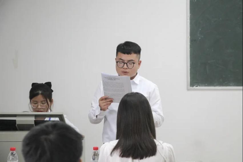 第十三届研究生会主席团成员徐景佳同学宣读选举办法