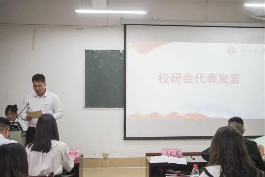 随后,校研究生会执行主席卓能聪同学发言,代表校研究生会肯定了过去一年william威廉亚洲研究生会的辛苦付出和取得的成绩,并希望新一届的william威廉亚洲研究生会能充满信心,团结一致,以崭新的姿态迎接新的挑战,努力创造更加辉煌的明天。