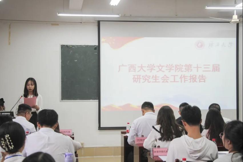 第十三届研究生会主席团成员杨斌雪同学宣读工作报告