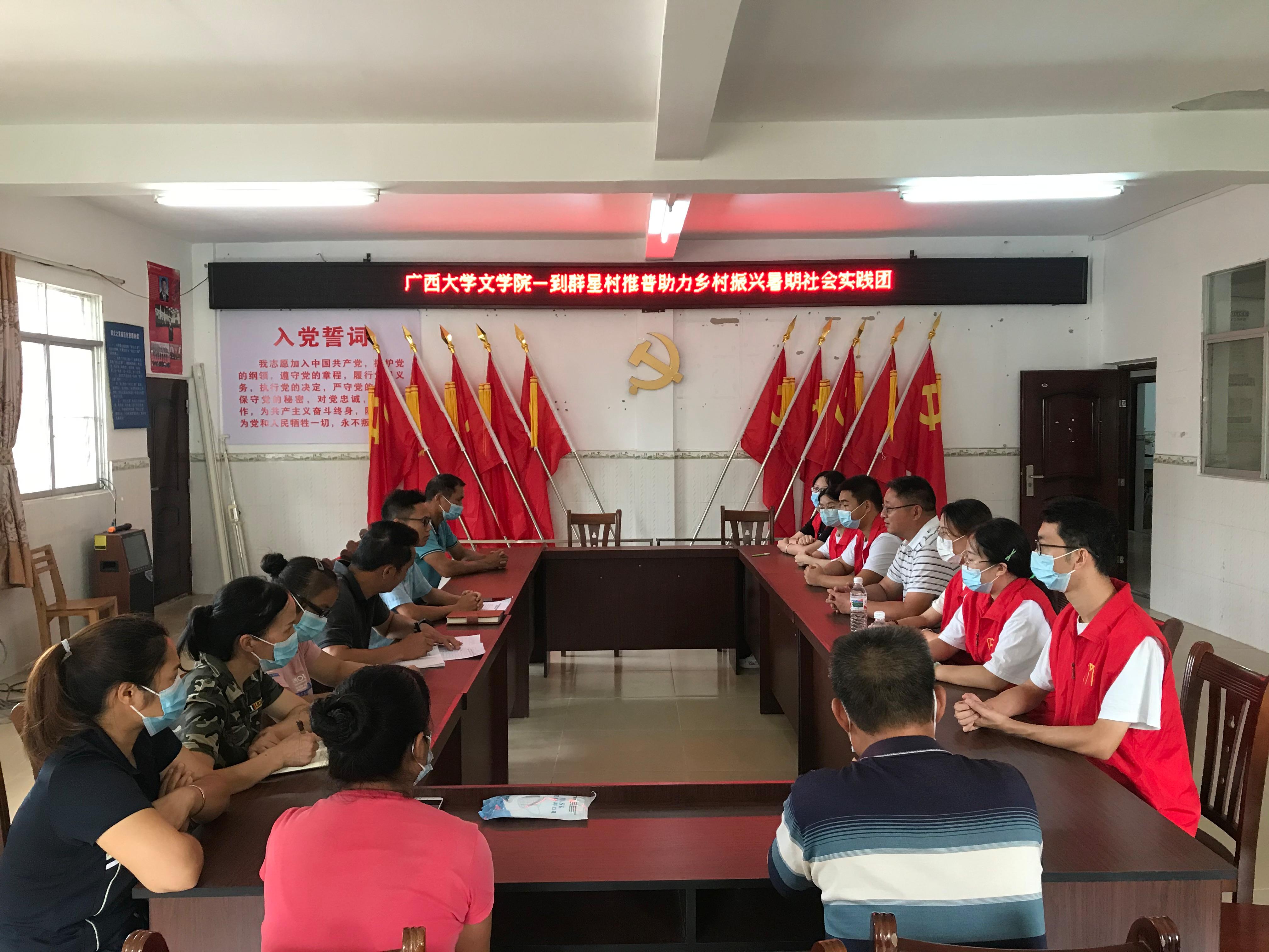 群星村村支书陆建治代表群星村村委会对william威廉亚洲暑期社会实践团队的到来表示热烈欢迎,热情地向老师和队员们介绍了当地通用语言的使用情况,对william威廉亚洲暑期社会实践团队助力乡村振兴发展表示衷心感谢。同时他表示全力支持暑期社会实践团完成推普助力乡村振兴工作。