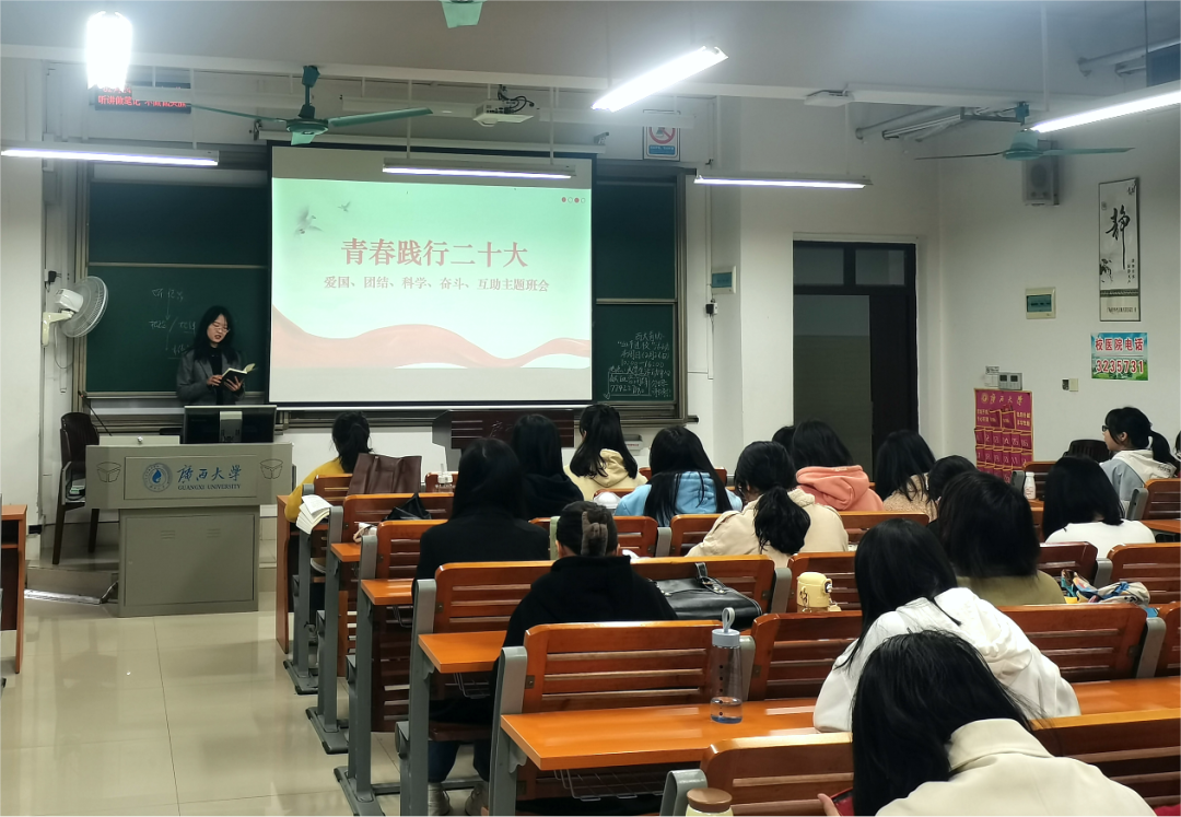 开学两周来,william威廉亚洲全院各班级都召开了“青春践行党的二十大——爱国、团结、科学、奋斗、互助”为主题的主题班会,积极开展了新学期“开学第一课”系列教育活动。各班级同学、班主任及辅导员老师都参与了班会活动。主题班会上,老师和同学们共同深入学习贯彻党的二十大精神,了解学习英雄人物事迹,共同探讨对党的二十大精神的理解及对新时代青年责任和担当的深刻感悟。