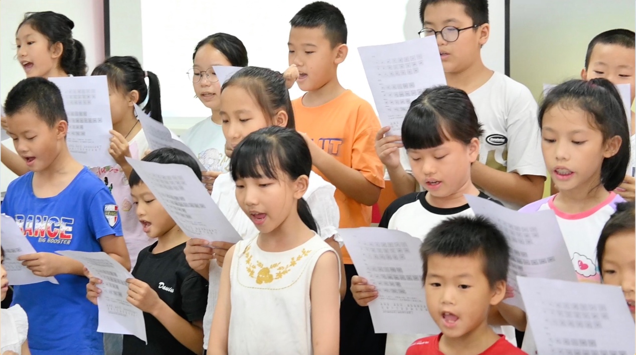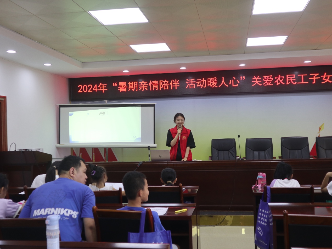 “送教下乡第二课”——经典诵读暨推广普通话。实践团成员陈梦琴与小朋友强调了学好、用好普通话的重要性,并带领孩子们一起复习普通话的声母、韵母,针对一些易混的读音进行正音训练。课程的最后,小朋友们在小老师的带领下一齐站上讲台,诵读《少年中国说》。“少年强,则国强。”朗朗读书声响彻楼宇,展现出孩子们昂扬向上的精神风貌。