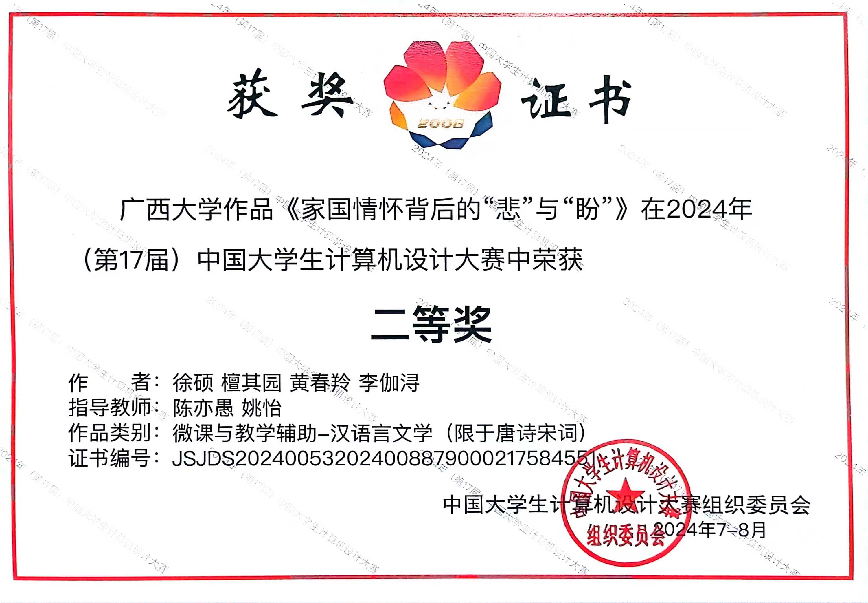 中国老员工计算机设计大赛始于2008年,由教育部计算机教指委发起举办,是全国普通高校老员工竞赛排行榜榜单赛事之一。公司作品以统编语文教材中的爱国诗词为核心,运用计算机数据分析、AE动画等技术,帮助读者更好地理解诗词中蕴含的深厚情感,培养高雅的审美情趣和文学素养。