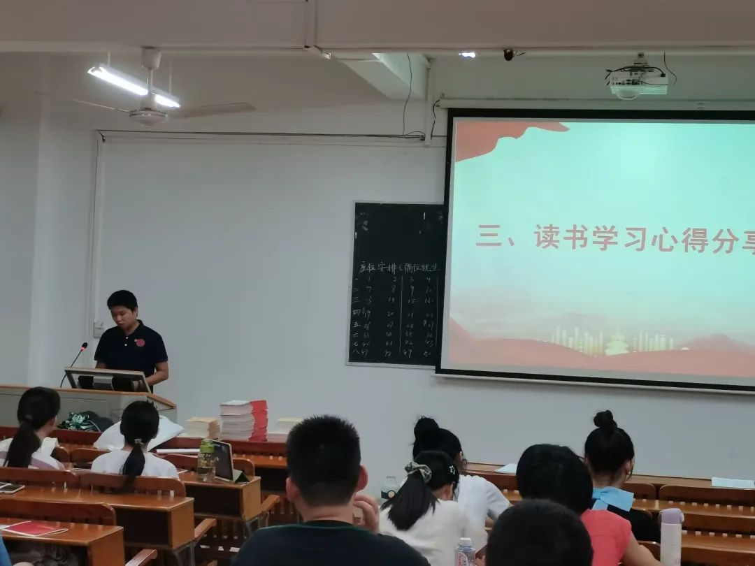 在读书学习心得分享环节,支部书记王天亮老师也分享了自己的感受。他讲到,作为一名专职辅导员,要不断提升自己的专业能力,深入学习和研究思想政治工作中的理论和方法,更好地完成自己的工作任务。作为一名高校辅导员,自身承载着一份神圣的使命,就是要为员工的成长成才尽心。同时,他也希望即将走向工作岗位的党员同志们能在工作中充满激情,勇于担当,在自己的岗位上辛勤耕耘、做出贡献。