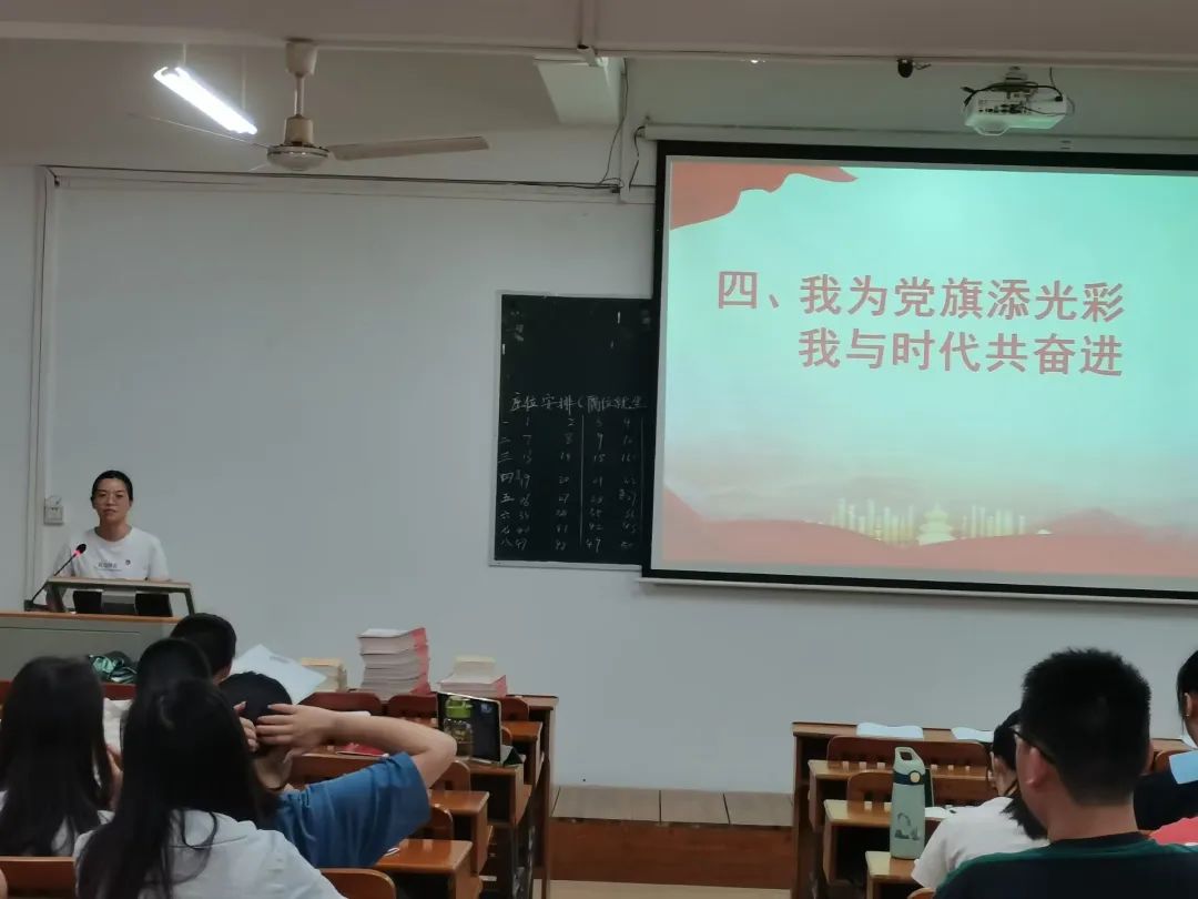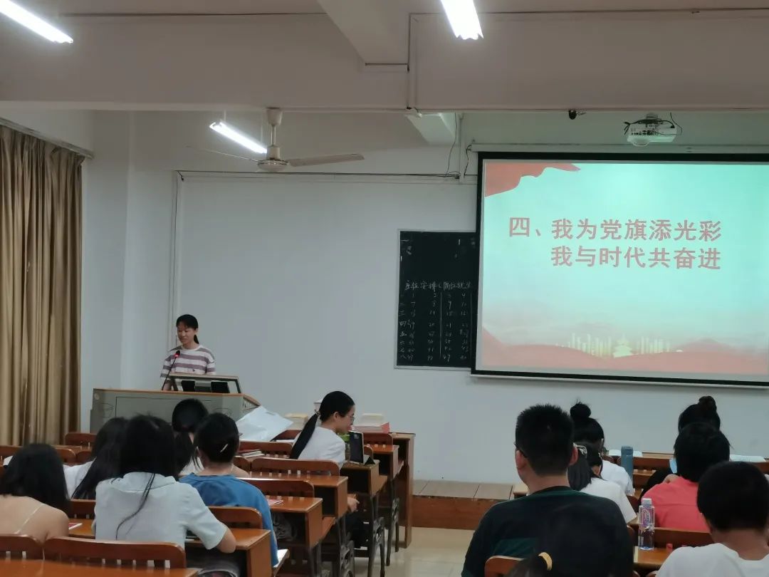 在“我为党旗添光彩,我与时代共奋进”环节,支部对获得荣誉的党员进行了表彰,同时邀请获奖代表陆海兰和肖湘缘进行了经验分享。她们对下一任的支委提出了一些宝贵的建议,表达了对党组织关怀培养的感激以及对母校的深深不舍。同时也希望下一届支委能够在支部中获得成长与收获,发挥自身的先锋模范作用。