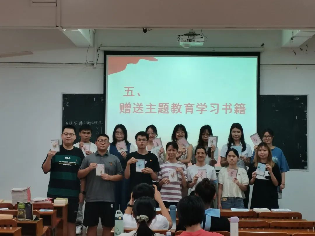 毕业季来临,为了给大家留下珍贵的回忆,支部精心设计了给毕业生党员赠送主题教育书籍的环节。支部书记王天亮老师代表支部党员给毕业生党员赠送书籍,告诫大家政治教育的重要性,提醒大家今后不管身处何方,都要时刻进行理论学习。随后,非毕业生党员积极与毕业生党员合影留念。