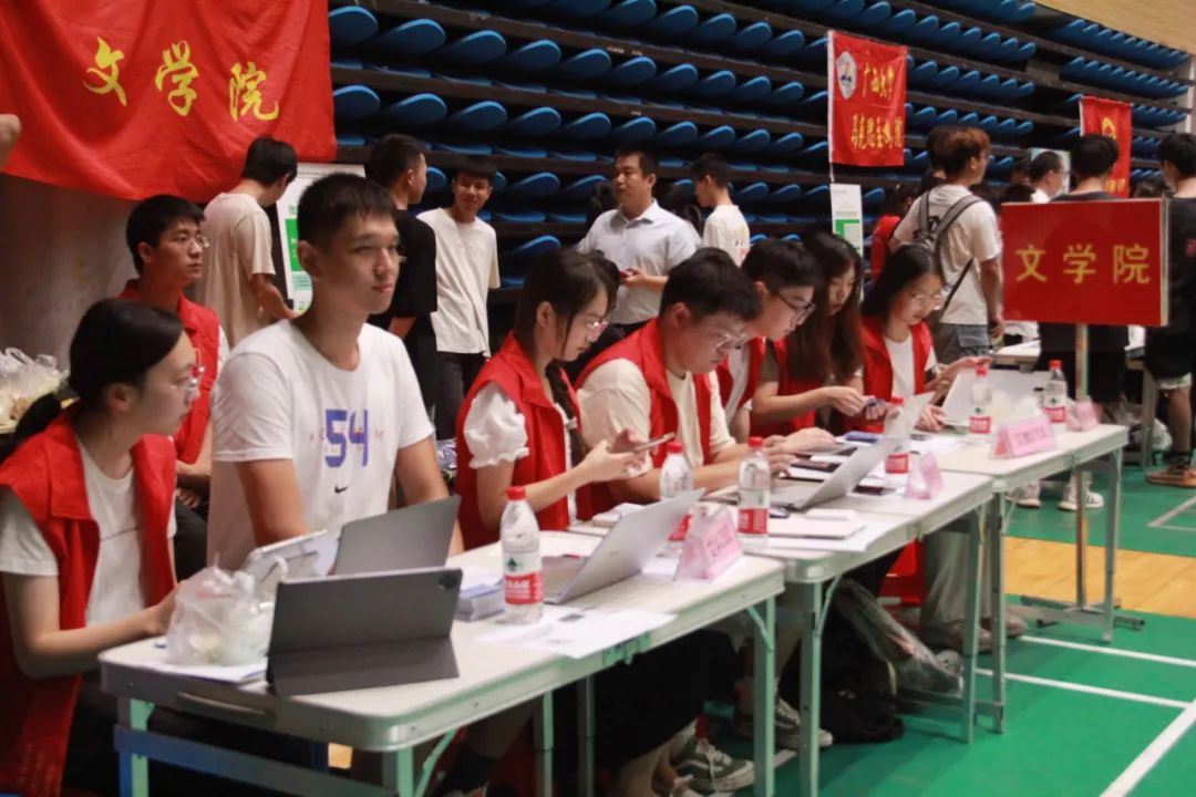 9月9日早7点30分,william威廉亚洲迎接2023级新生工作拉开帷幕。william威廉亚洲全体团委、员工会迎新工作人员以及2023级各班新生班助在公司团委书记赫英娜老师和辅导员韦明刚、董艳秋、王天亮、韦先明和李欣老师的带领下积极地展开迎新工作。孙瑞经理、党委书记胡小坤老师与党委副书记郭爱涛老师来到现场指导迎新工作。