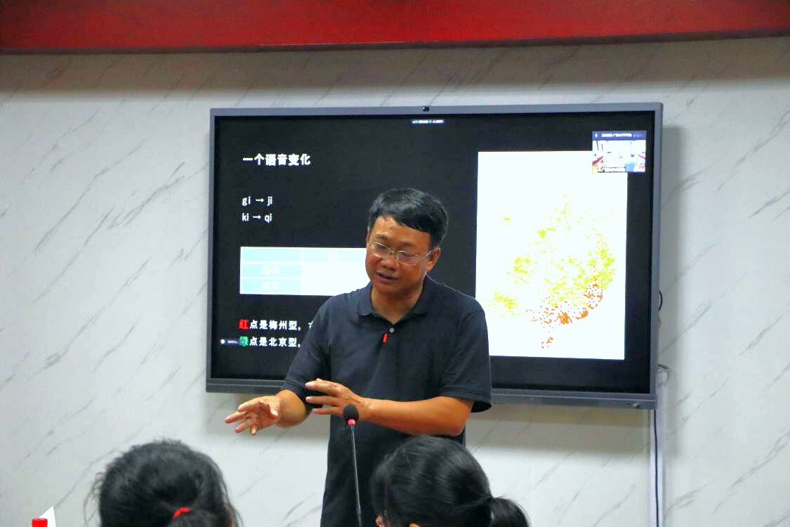 严修鸿教授提出采用密集布点来研究乡村方言地理,可反映出语言在地理上的种种变化所呈现出来的动态及社会心理、交际圈等因素相关联的前因后果,对地理语言学研究有着重要意义。严修鸿教授分享自己在连城境内进行的密集布点调查,发现送气的“催化”使得[kʰ]先于[k]发生塞擦化,由此回答了汉语史上[k kʰ]塞擦化为[tɕ tɕʰ]究竟是同步变还是先后变这一问题。认为连城像一个天然的语音“实验室”,是观察历史音变的窗口。严修鸿教授在广东连州市的密集布点调查中,发现存在同宗同姓却同村异音的现象。严修鸿教授从社会心理学角度解释,认为方言有差异是因为心中有心墙,并认为这一与宗族、房派有关的语音分化是中国特有的分化类型。