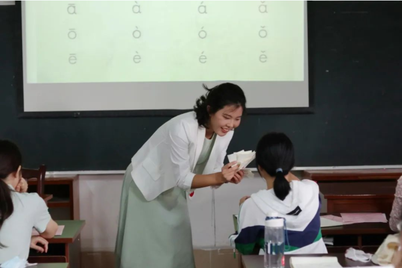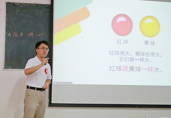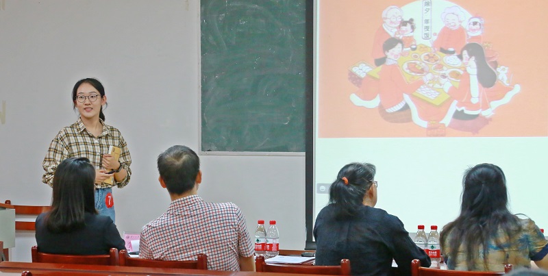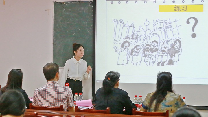 比赛分为本科生组和研究生组。参照自治区比赛赛制,在教学技能展示过程中,选手们自选语言点进行6分钟的模拟课堂试讲。选手们将模拟真实课堂教学情境,自行设计语言点的教学内容和组织方式。从讲解到举例,从提问到小组讨论,选手们相对完整地呈现了对外汉语教学中的教学过程,他们自信热情、巧思不断的讲台表现赢得了评委和观众的阵阵掌声。