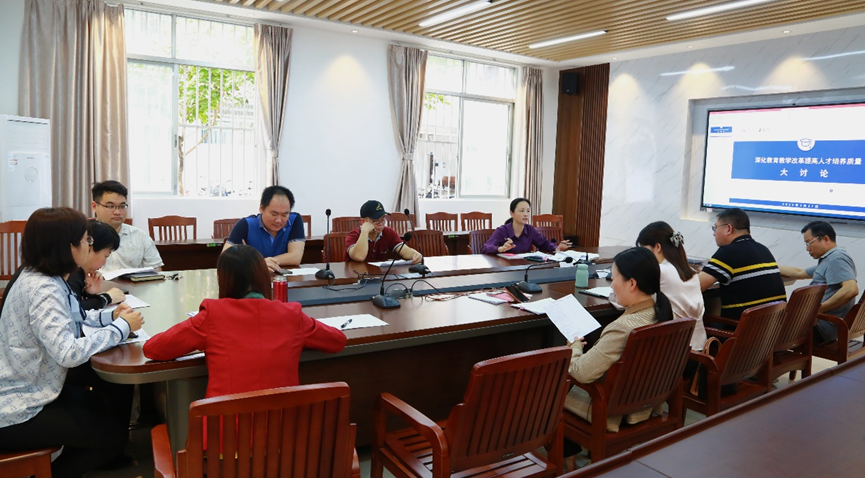 会后,专任教师和行政人员两个讨论组围绕六大专题展开了研讨,并提出了许多有建设性的建议。教务处耿葵花处长、潘莹副处长参与了专任教师组的研讨活动,在认真听取教师们的建议的同时,也积极回应老师们关心的教学场地和设备使用、指导本科生发表论文、课程开设等问题,现场气氛热烈。