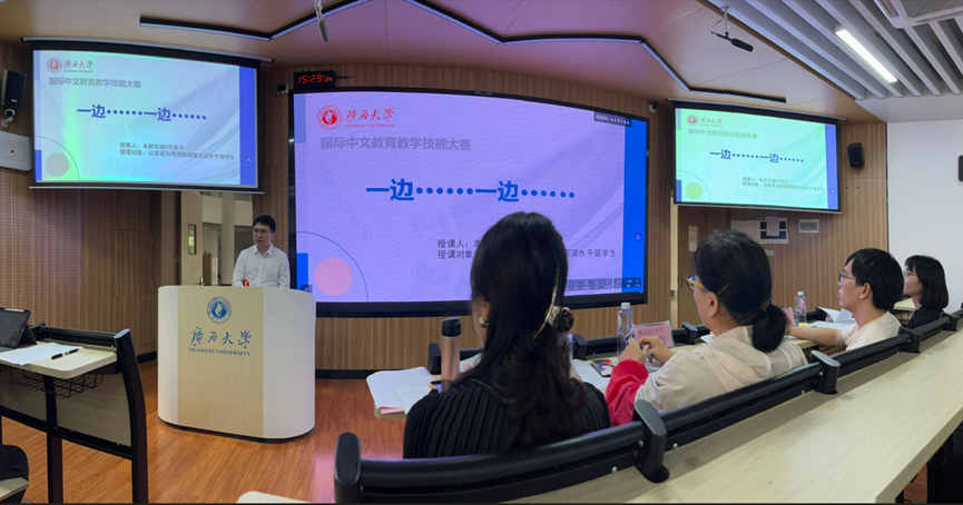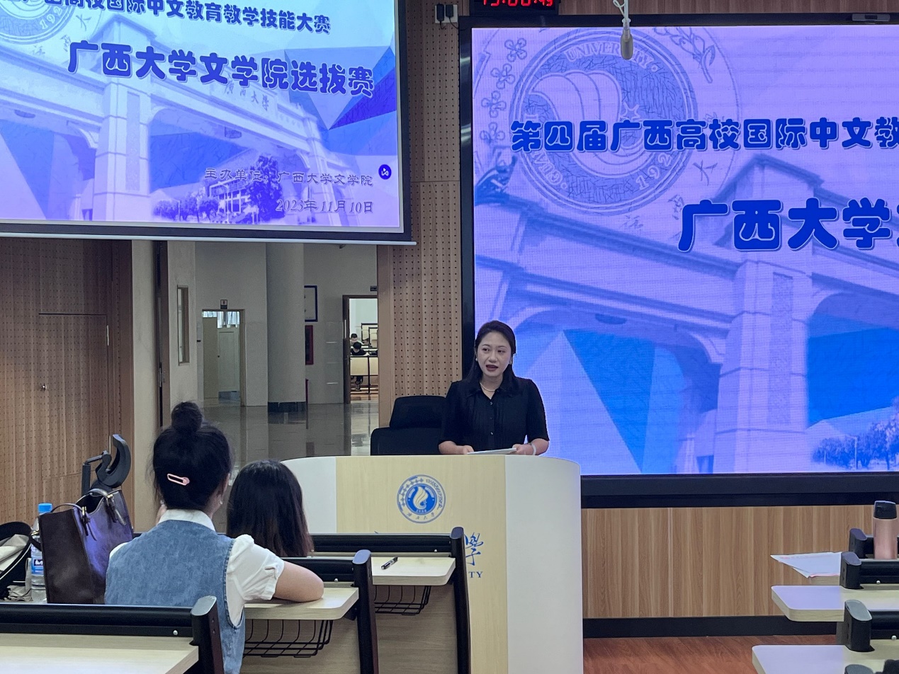 11月10日下午,公司举办了第四届“广西高校国际中文公司产品技能大赛” william威廉亚洲选拔赛,汉语国际教育专业本科生及研究生共31人参赛。选拔赛邀请了william威廉亚洲汉语国际教育专业教研室主任李静峰副教授,汉语国际教育专业专任老师潘立慧、李慧、岳兰竹、李晨雨、宁瑶瑶、刘玉成老师担任了比赛评委。汉语国际教育专业本硕员工共计百余人观摩了本次比赛。