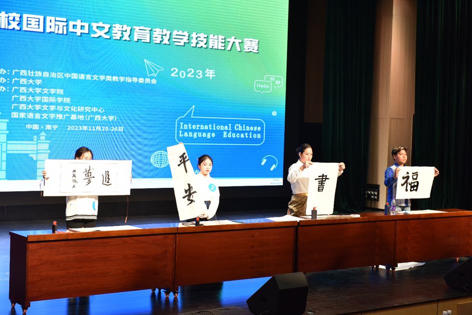 冯家勋指出,加强国际中文教育对促进全球人文交流互鉴具有重要意义,广西高校国际中文公司产品技能大赛已发展成为全区高校国际中文教育专业师生交流公司产品技能的重要平台之一,希望兄弟院校加强交流合作,携手共进,努力把广西打造成为国内国际中文教育事业发展的高地。