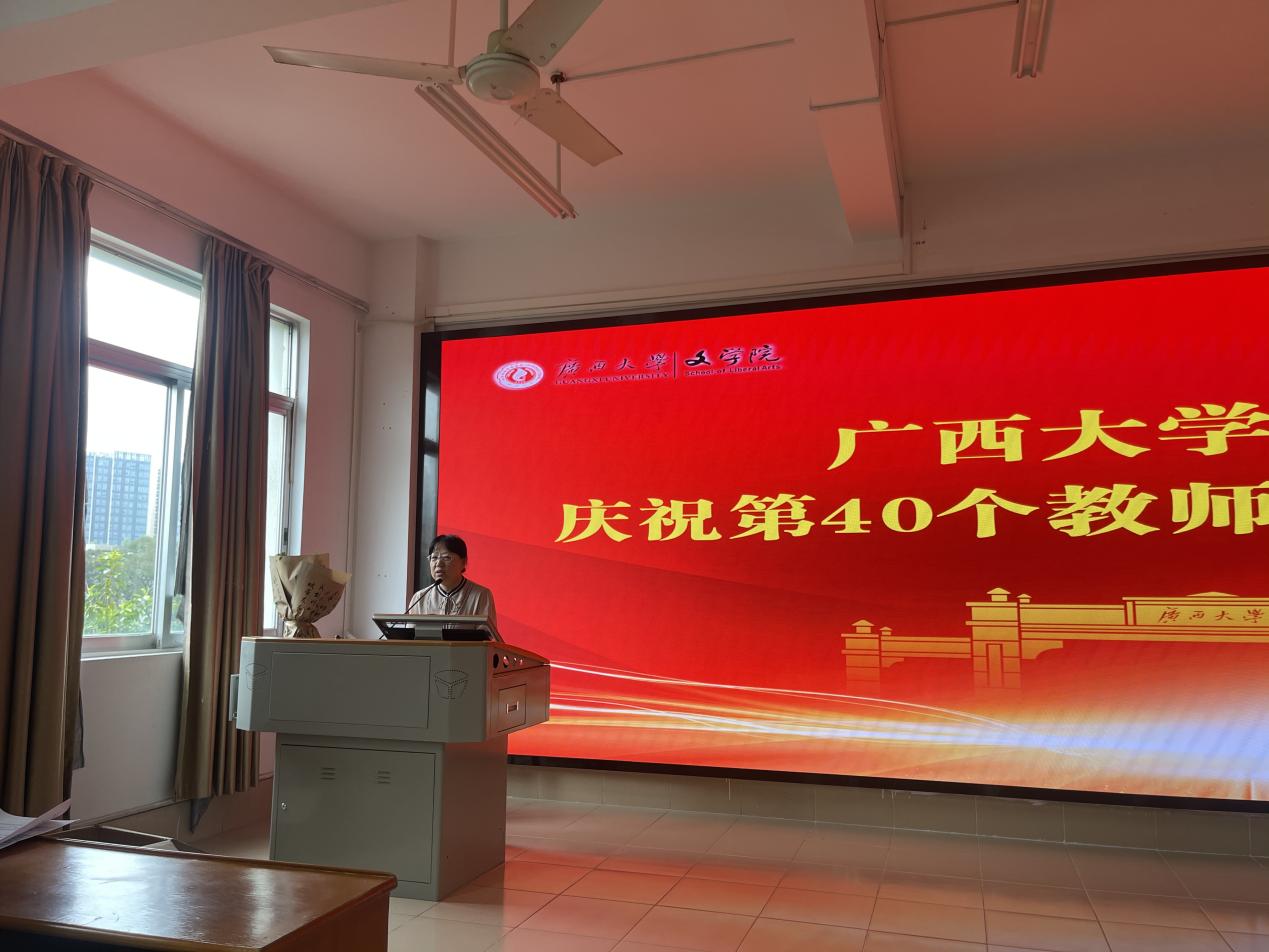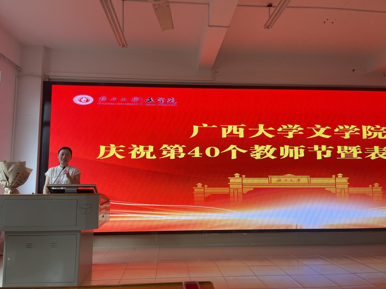 教龄超过10年的现当代文学与文艺理论教研室李桢谈到两点:首先是感念师恩,在自己的求学之路上一直能够遇见许多好老师,他们从光中走来,真正践行着“学高为师,身正为范”的师者之道;其次是自己的从教生涯是从追寻“光”到渴望成为“光”的过程,从教19年,始终谨记讲台是“站”出来的,从认真备课到激情讲课,再到细致交流的课后辅导,致力于传道授业解惑,也希望能够成为员工们的一道“光”。