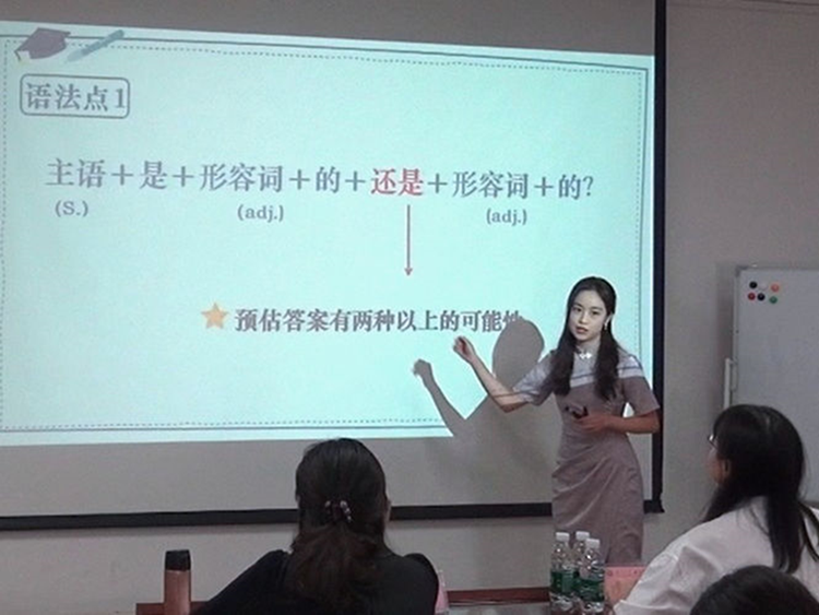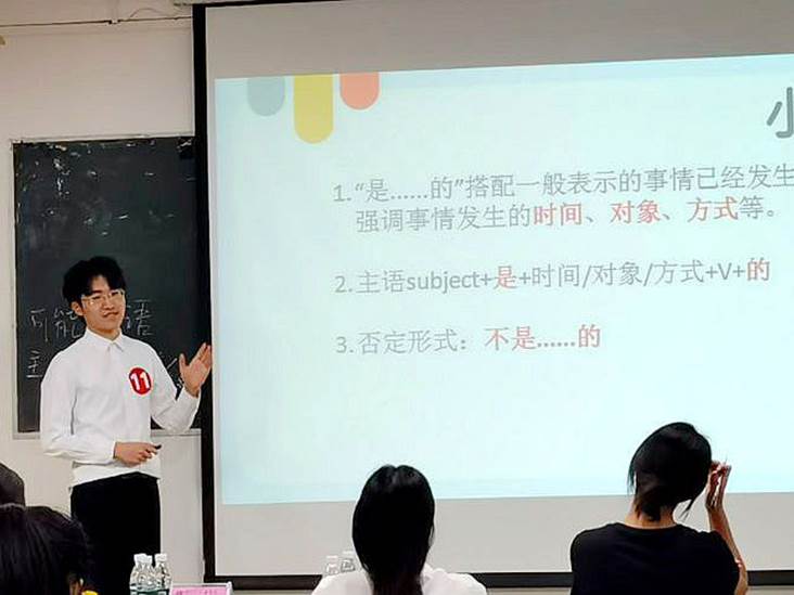 比赛结束后,评委们充分肯定了选手们的精彩表现,对选手们勇于挑战自我,在讲台上充分展示自己表示赞赏。为帮助选手们提升教学技能,评委们也提出了一些中肯的建议:一是要认真研究教学对象,包括员工语言水平、母语背景等,设计符合教学对象的教学素材和语言;二是要精心设计教学内容,从语言现象过渡到知识点,运用好对比的方法,把握教学从易到难的内在逻辑;三是要尽量优化课堂教学节奏,对教学内容应了然于心,准确运用语言,提升课堂感染力。此外,选手们如果能在做好基本环节的基础上找到亮点和特色,那么在比赛过程中更能脱颖而出。
