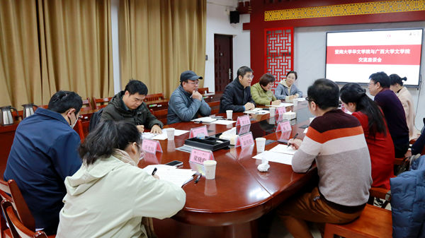 座谈会上,双方围绕汉语国际教育专业建设与人才培养、教学成果奖申报、科研项目申报等三个方面开展了探讨和交流。阳静教授以团队申获自治区教学成果一等奖项目《“故纸堆里的新实践”——中国古代经典作品课程群之新时代激活探索》为例,从选题角度、核心创新点培育、团队打造、申报书撰写等方面对申报进行了全过程经验分享。鹿士义教授从“共生教育”的角度进行了探讨。
