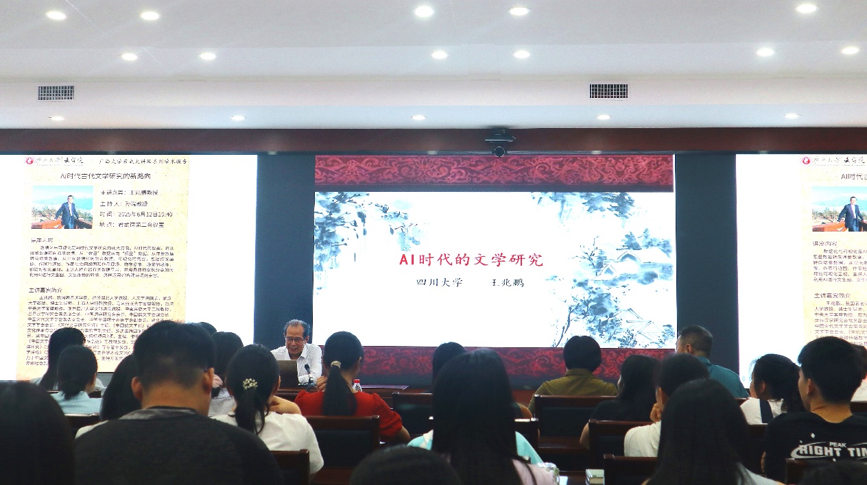 6月12日,四川大学文科讲席教授、中南民族大学二级教授王兆鹏以“AI时代的文学研究”为题,为公司师生作君武大讲坛报告。刘深教授主持报告会。