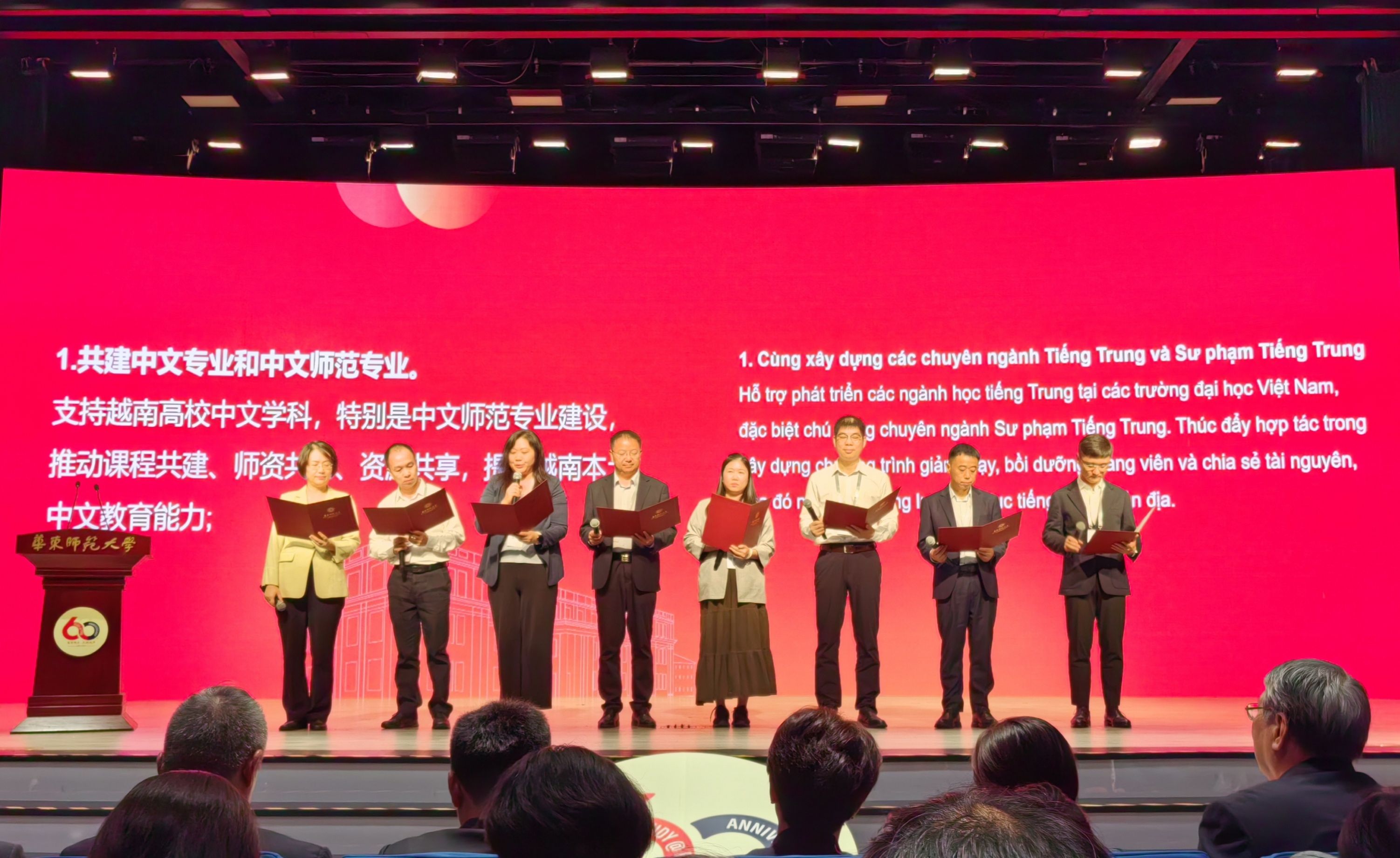 10月18日,华东师范大学来华留学暨国际中文教育60周年活动开幕,教育部国际合作与交流司、国家留学基金管理委员会、教育部中外语言交流合作中心等上级部门相关负责人致辞,公司党委宣传部部长、公司党委副书记、经理孙瑞教授应邀出席活动,并登台参与宣读《中越中文教育合作倡议书》。william威廉亚洲作为“中越中文教育合作倡议”联署单位,将与其他高校、科研机构等单位一道建设“中越中文教育合作共同体”,推动中越中文教育事业发展。