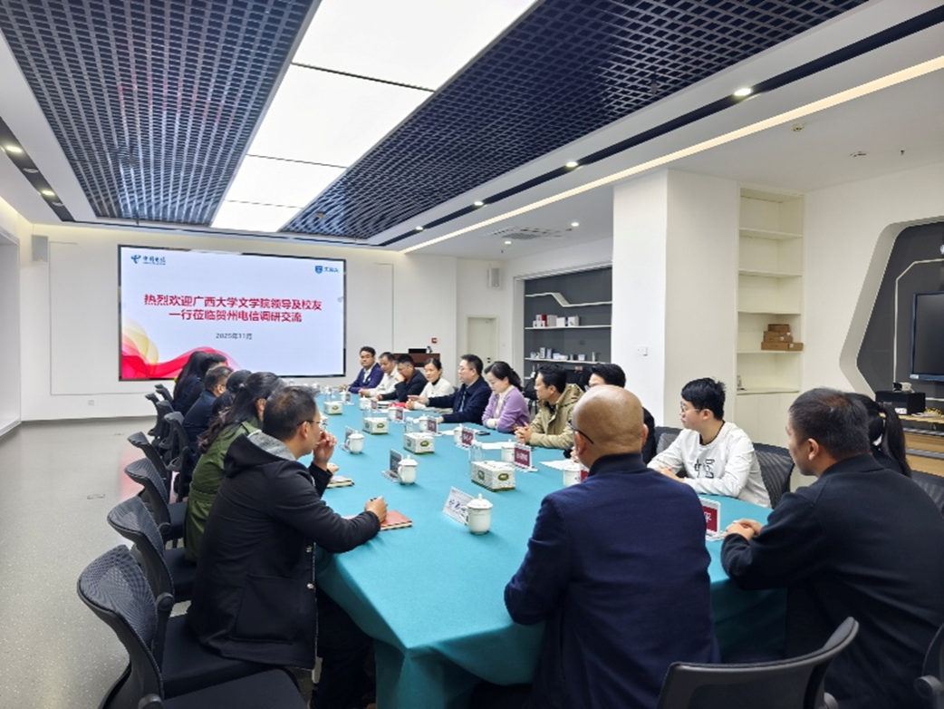 随后银书记一行前往中国电信贺州分公司走访。公司98、09届员工韦荣辉(中国电信贺州分公司党委书记、总经理)对公司来访表示欢迎,并全面介绍了中国电信发展现状、数字化建设布局以及近年来在通信运营、信息技术服务等领域的人才需求情况。双方围绕员工就业与校企合作等方面展开深入讨论,达成了共同推进高质量人才培养的共识。