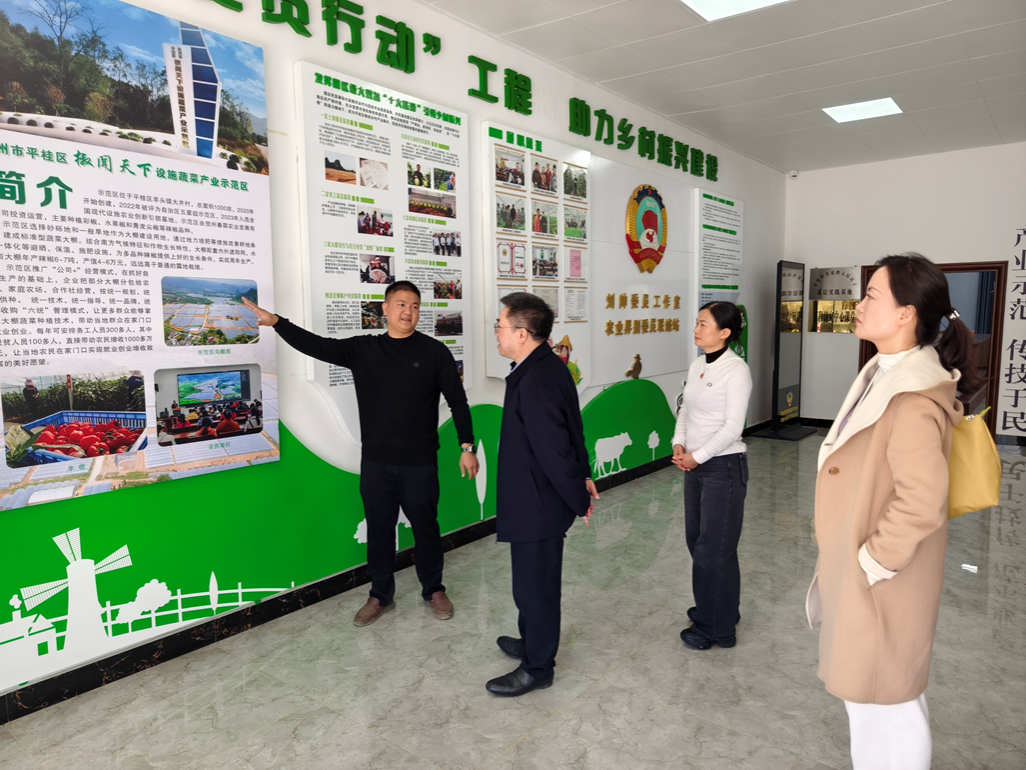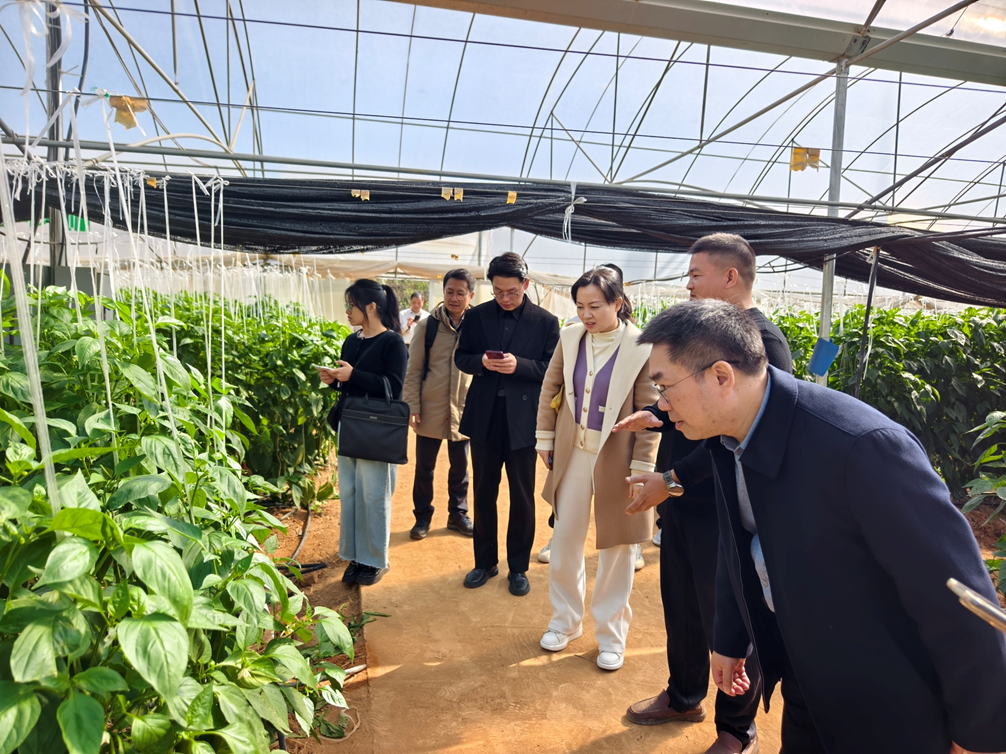 在公司09届员工刘帅(自治区劳动模范、贺州市人大代表、贺州市春霖农业发展有限公司总经理)的带领下,银书记一行对椒闻天下设施蔬菜产业示范区的发展历程、产业布局及运营模式进行了实地参观和深入了解。据介绍,该示范区以“十大联带”为抓手,在推动乡村产业振兴、带动农民增收致富方面成效显著,已逐步形成较为完善的现代农业示范体系。