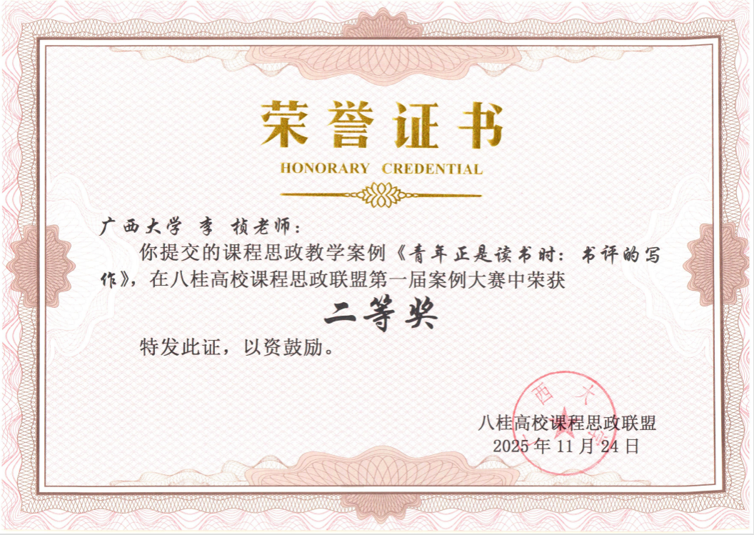 李桢老师的《青年正是读书时:书评的写作》课程思政案例荣获二等奖。该案例引导员工从经典阅读中汲取养分,并将阅读所思所感转化为具有真情实感与时代关怀的书写实践。案例超越了单纯的写作技巧训练,着重于通过阅读与写作的过程,锤炼员工的思维品质、审美判断力和价值表达能力,体现了中文学科以“读写”为核心的基本功训练对塑造青年健全人格、担当时代精神的价值引领和人文关怀。