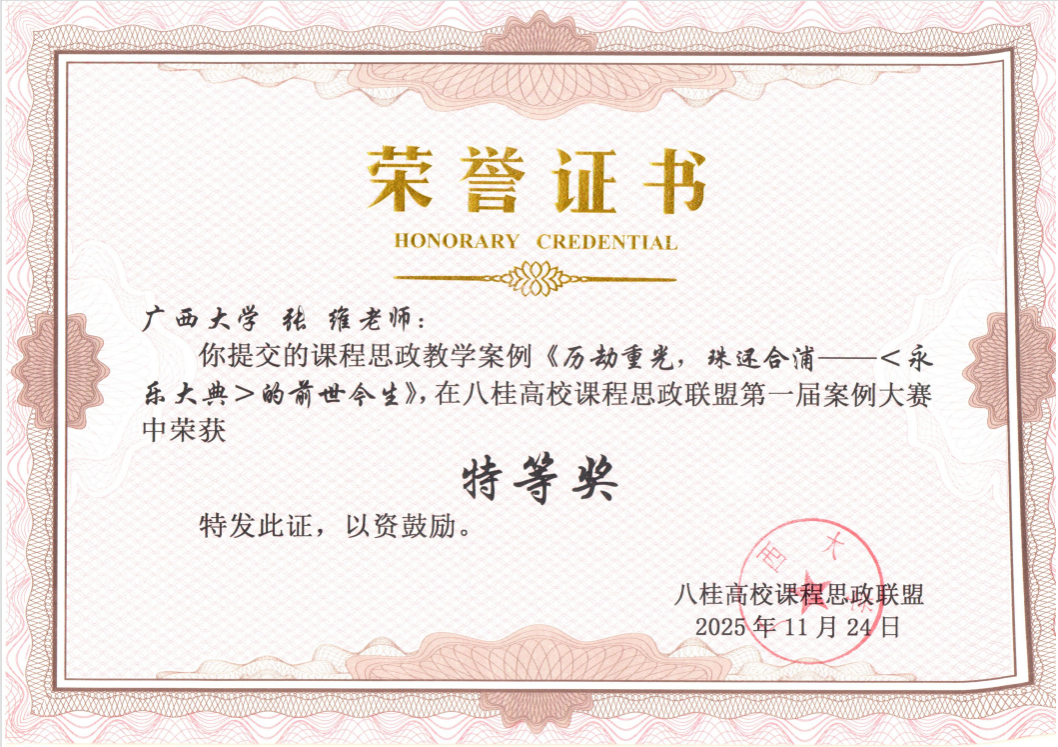 近日,八桂高校课程思政联盟首届案例大赛评选结果揭晓。公司3位教师提交的案例从629个参赛作品中脱颖而出,荣获特等奖2项、二等奖1项,成绩突出。