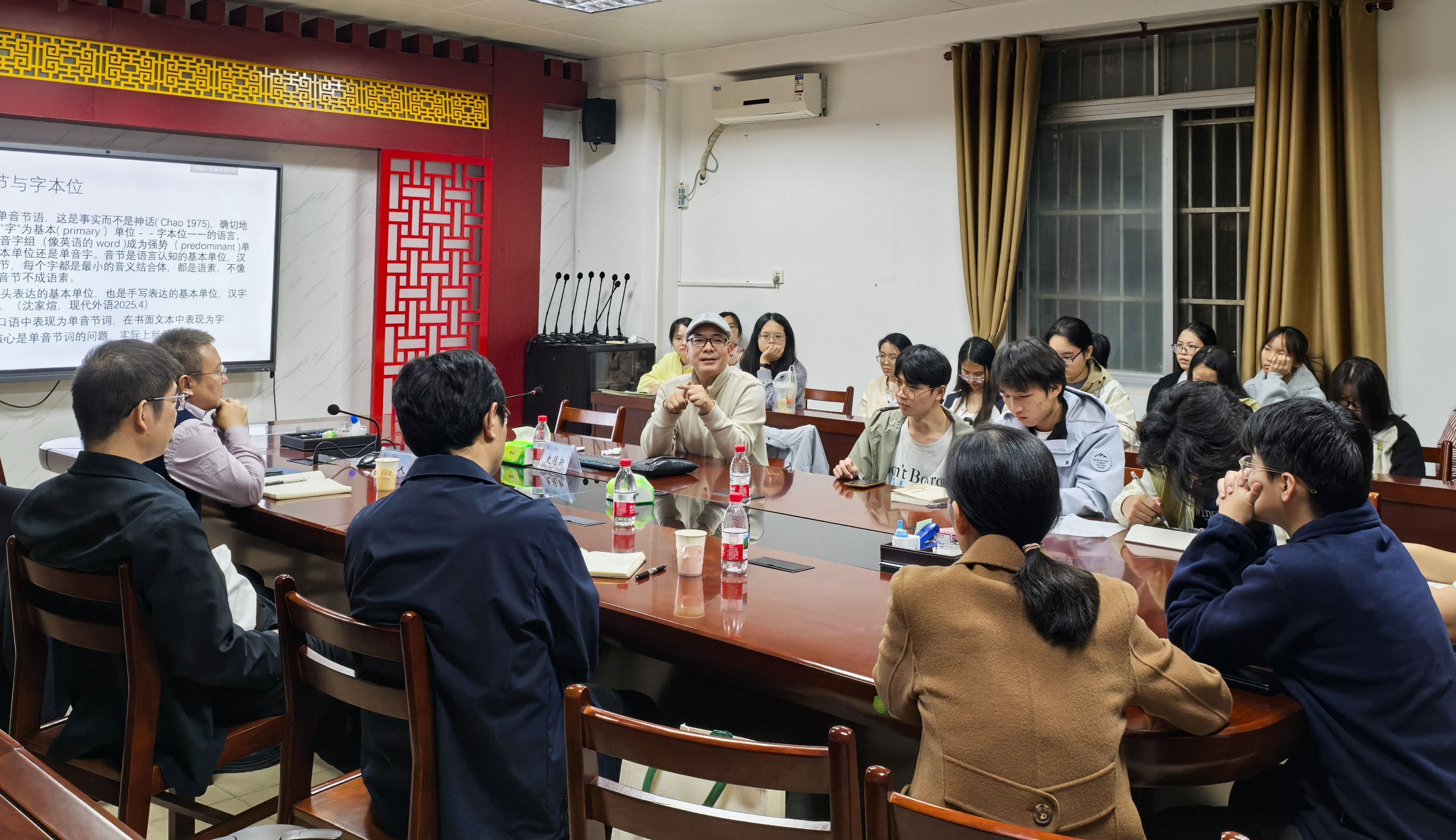11月27日,青岛大学史冠新教授以“音节本位下的汉语研究”为题,为公司师生做望道大讲堂学术报告。谢晓明教授主持。