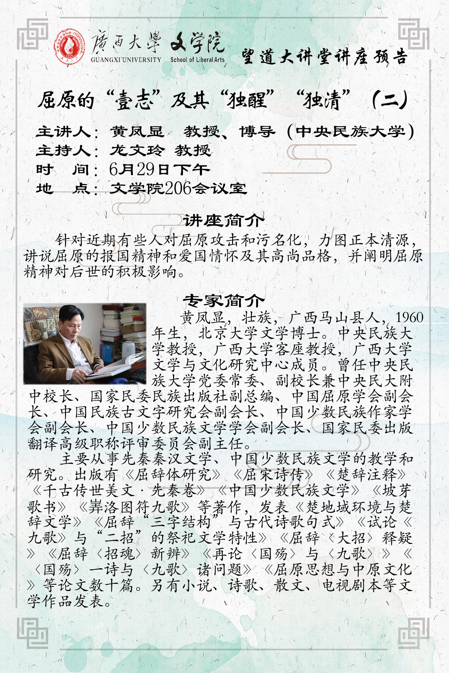 黄凤显教授: 屈原的“壹志”及其“独醒”“独清”(二)