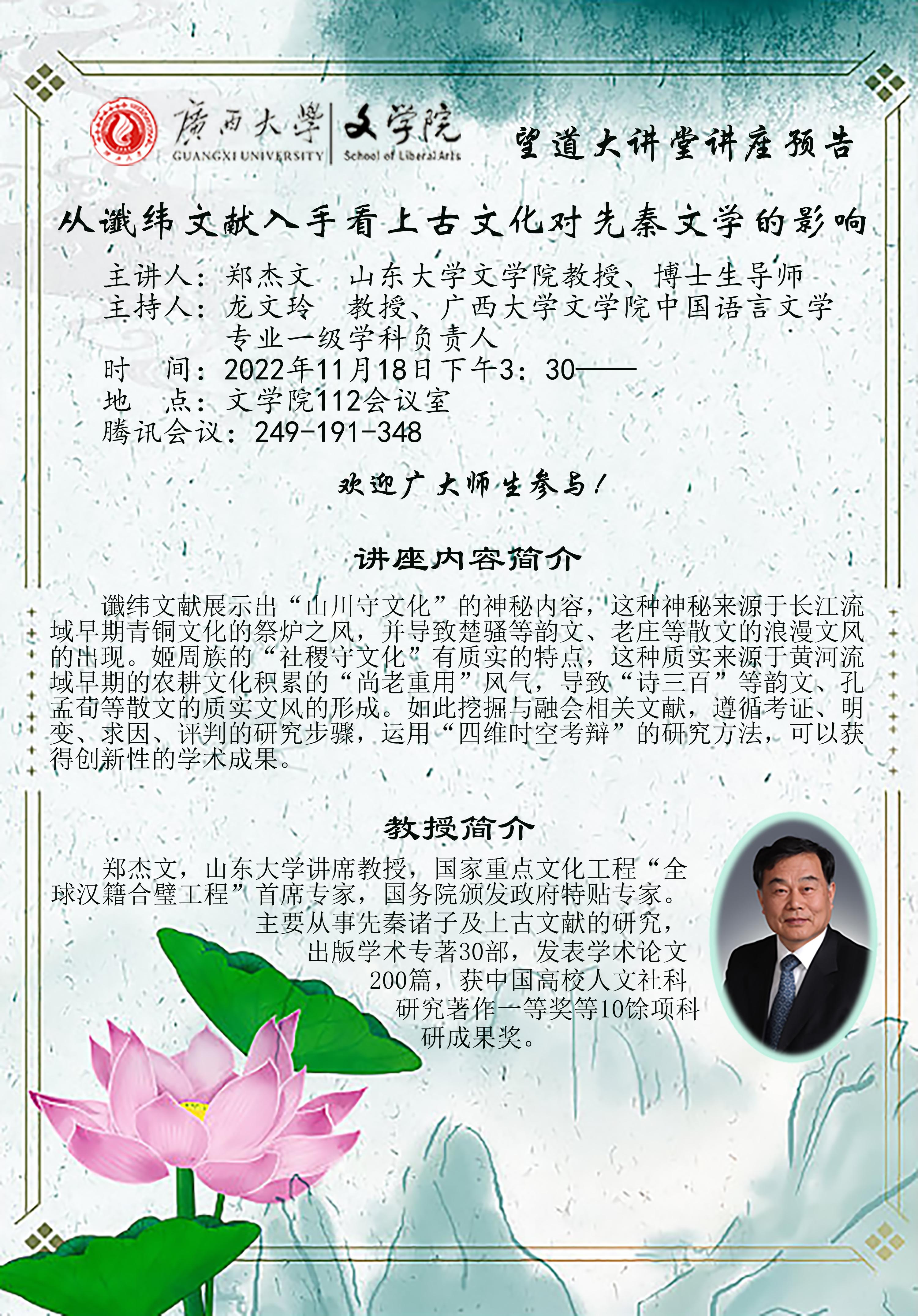 郑杰文教授:从谶纬文献入手看上古文化对先秦文学的影响