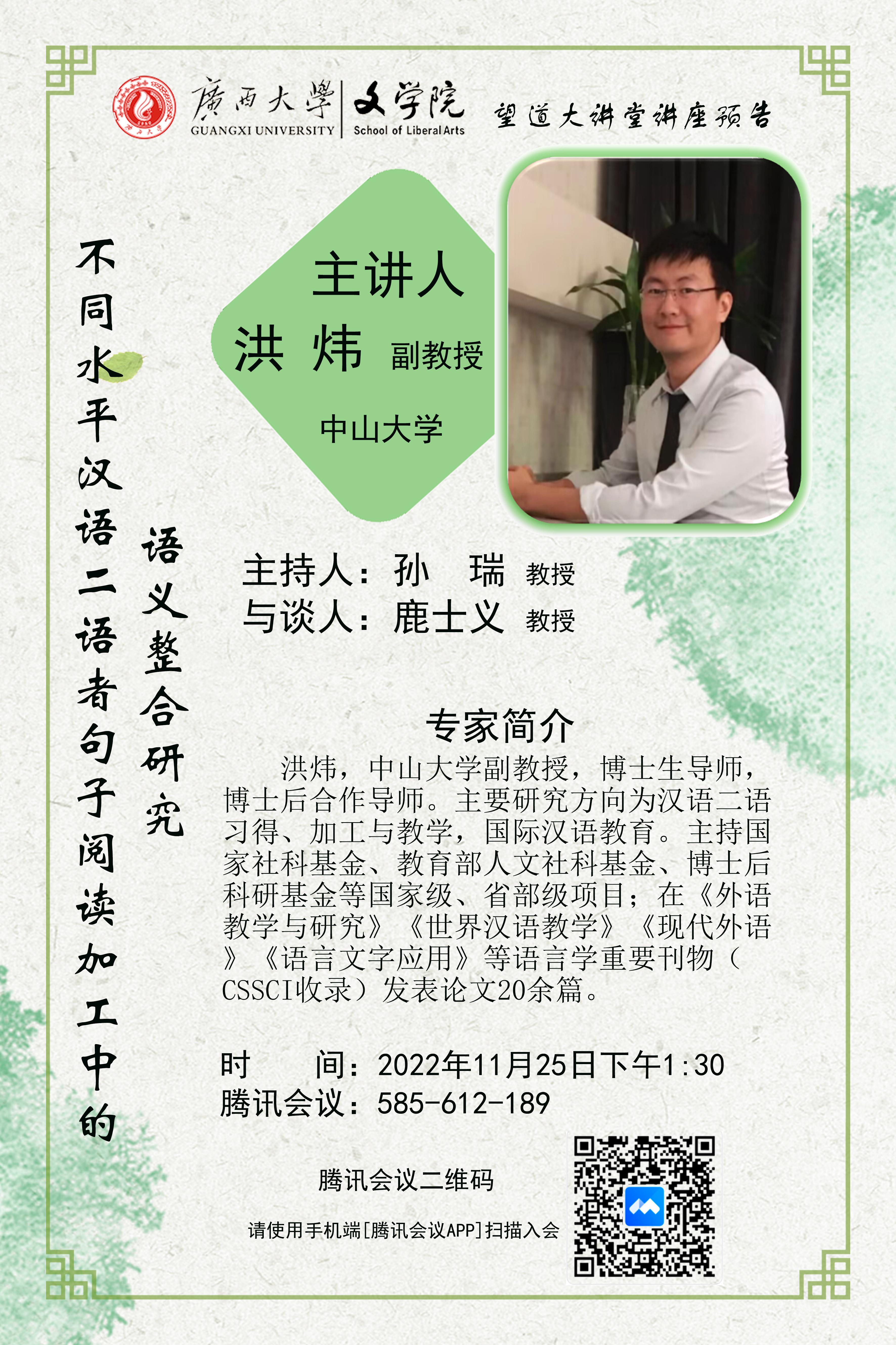 洪炜副教授:不同水平汉语二语者句子阅读加工中的语义整合研究