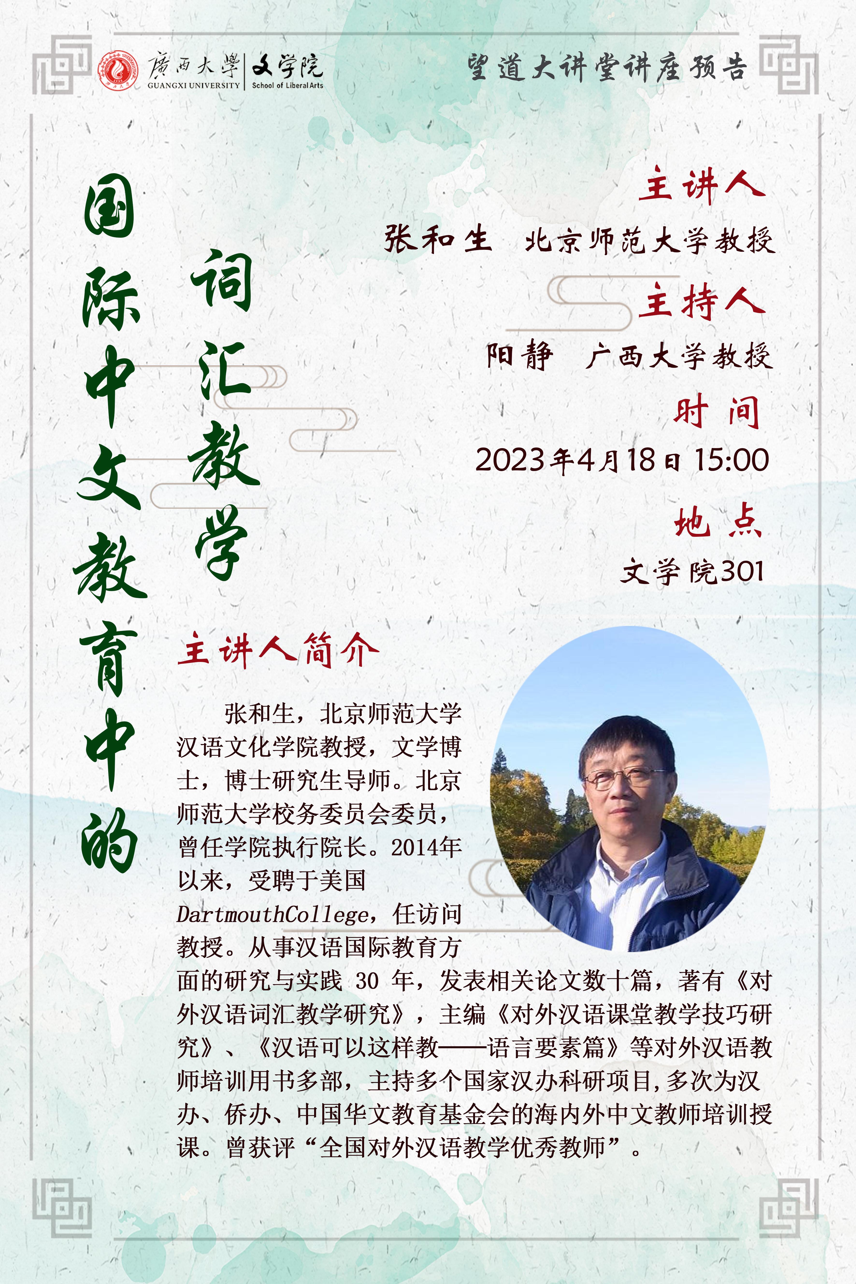 下一条:张和生教授:国际中文教师的知识结构与能力结构