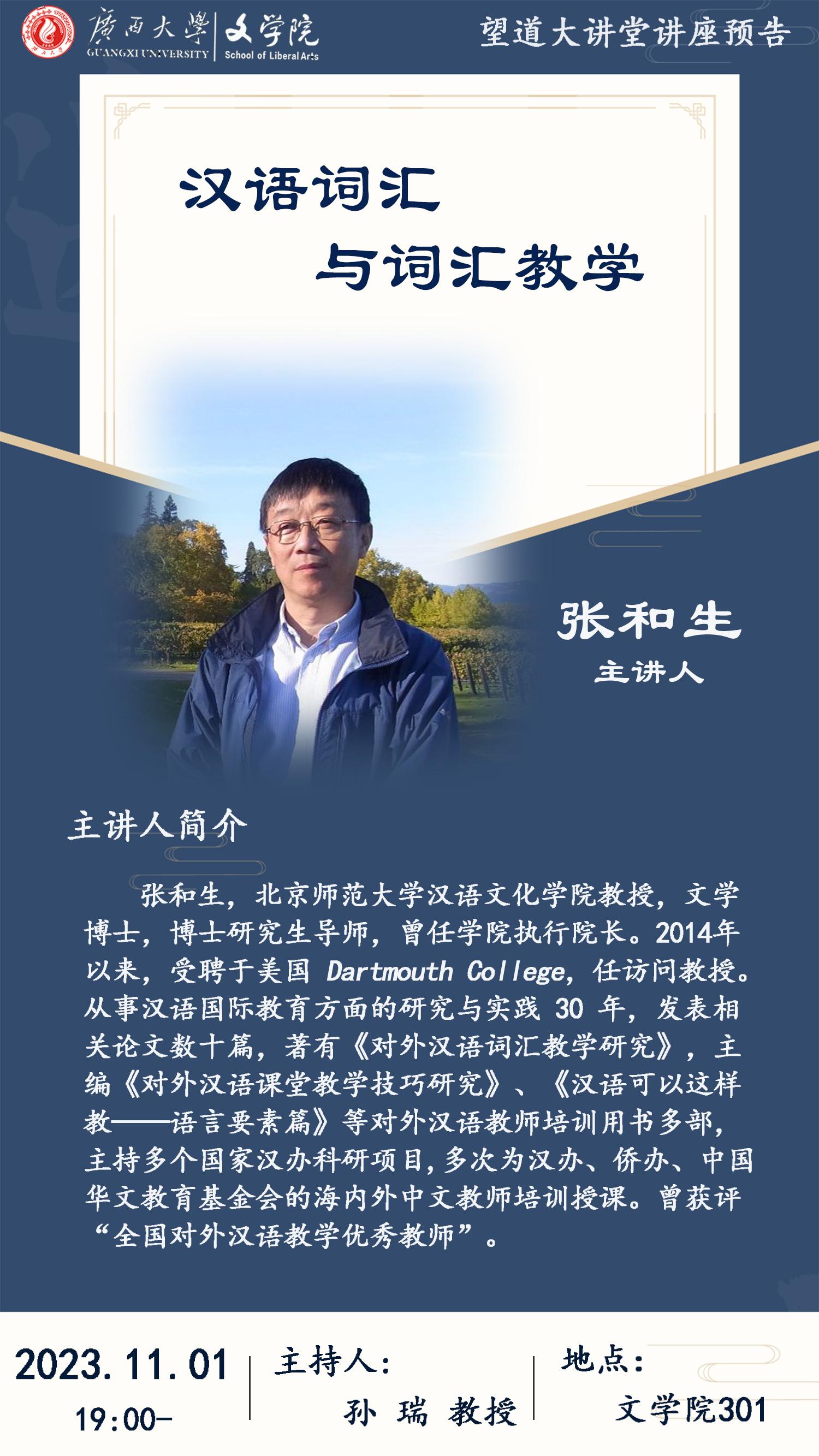 张和生教授:汉语词汇与词汇教学