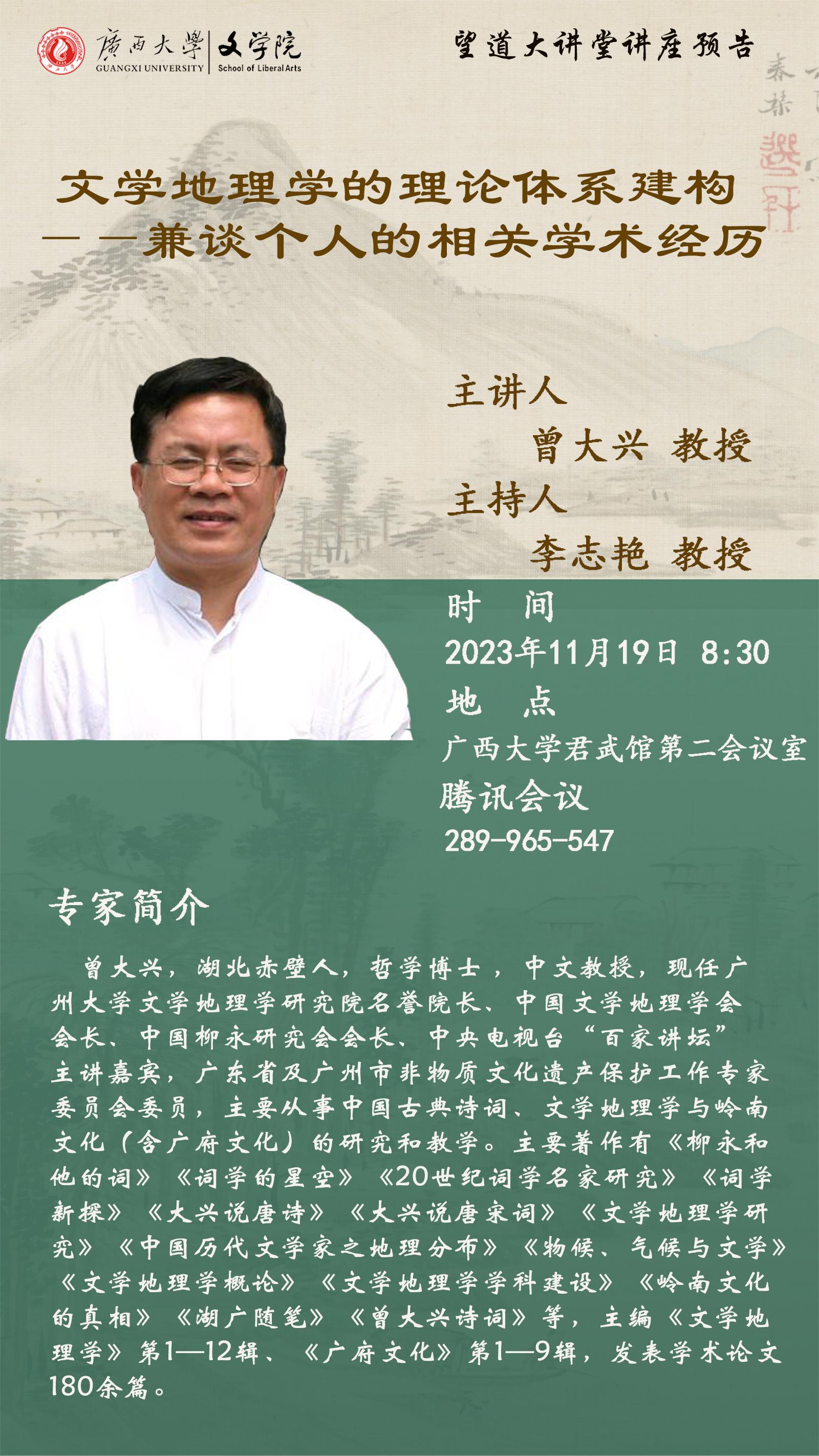 曾大兴教授:文学地理学的理论体系建构-兼谈个人的相关学术经历