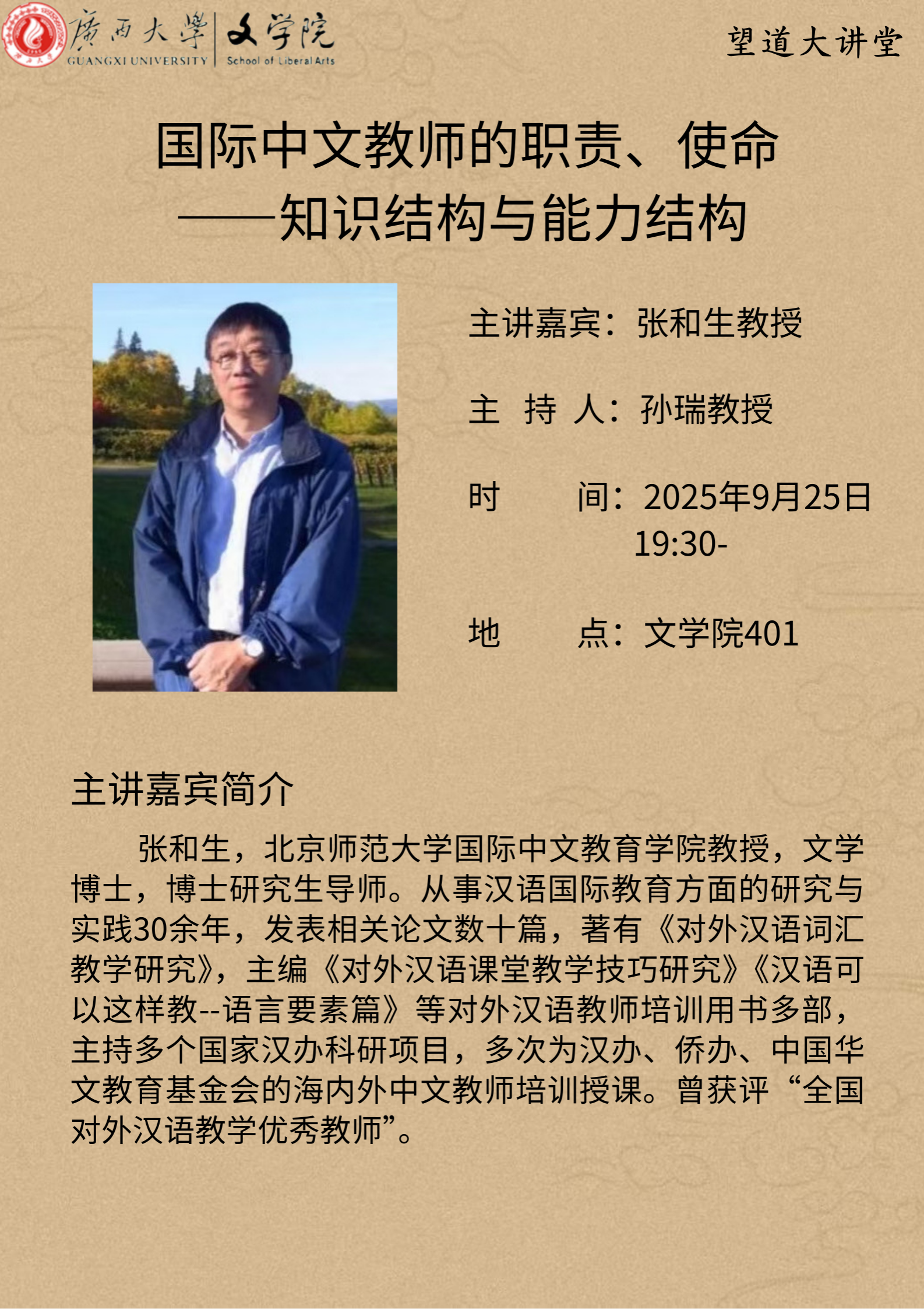 上一条:【望道大讲堂】张和生教授: 汉语词汇与国际中文教育中的词汇教学