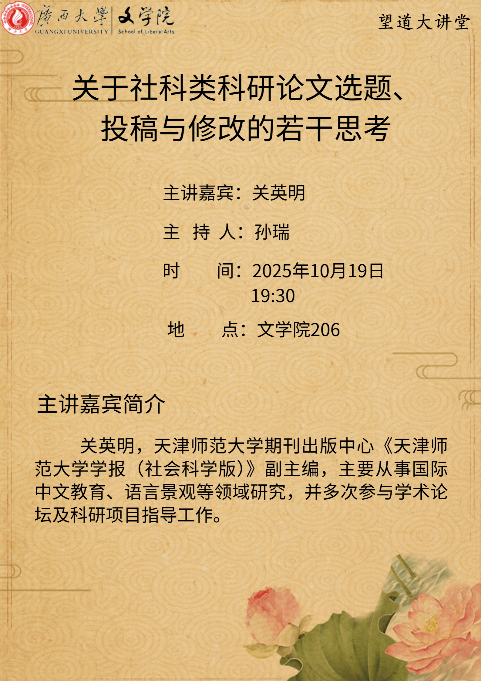 下一条:宁瑶瑶老师应邀参加第十五届全国汉语词汇学学术研讨会并宣读论文