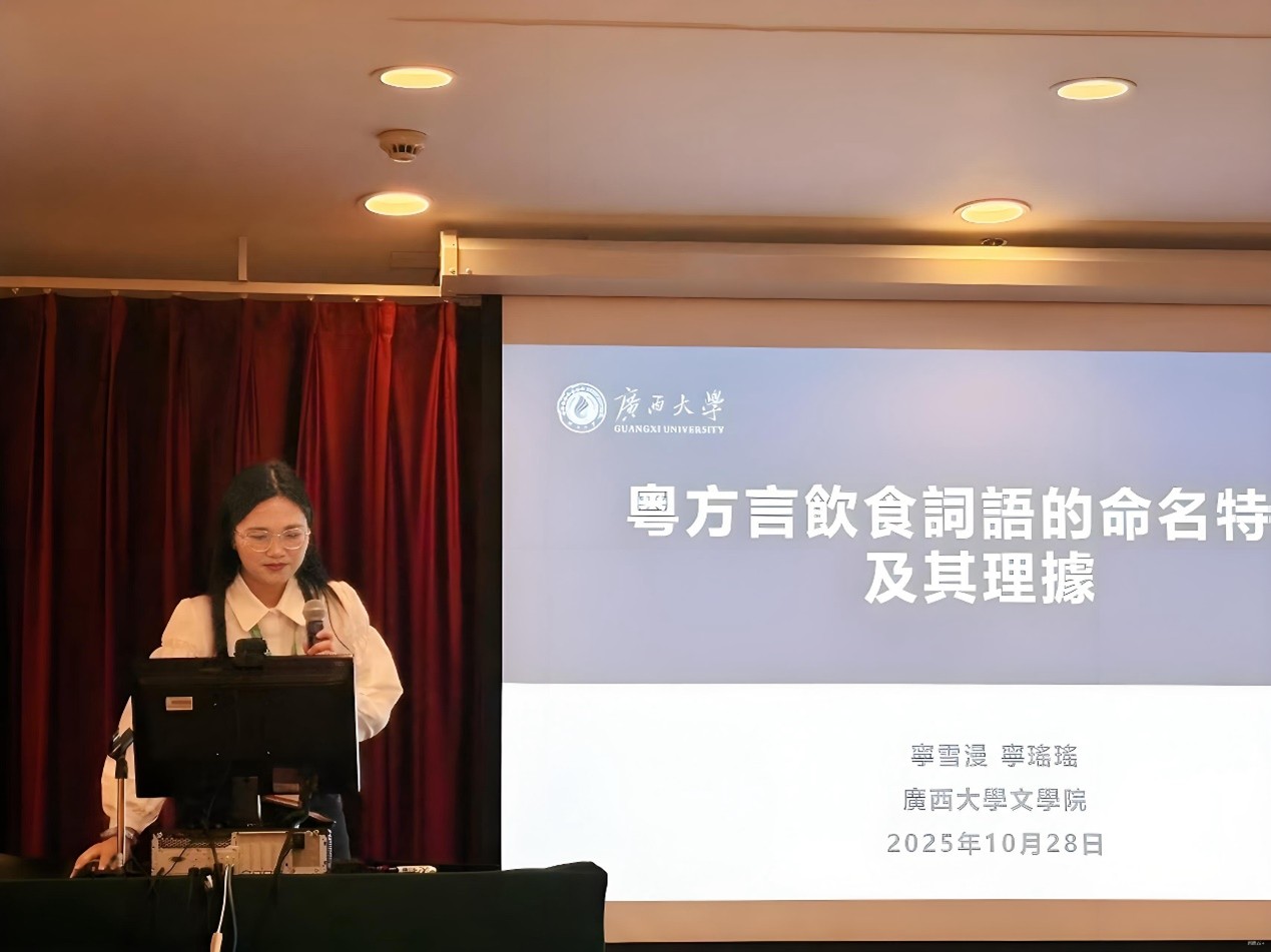 公司2024级国际中文教育专业硕士研究生宁雪漫同学应邀赴澳门参会,并现场宣读由宁瑶瑶老师指导完成论文的《粤方言饮食词语的命名特征及其理据》。该论文聚焦粤方言饮食词汇的语言规律与文化内涵,得到了与会专家的肯定。