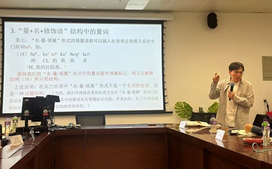 11月1日至11月2日,“汉藏语语法名物化结构的形式与功能”专题研讨会在澳门大学召开。韦焕干老师应邀参会并现场报告论文《壮语修饰限定结构中的量词——兼论壮语的名物化结构》。该论文探讨了壮语量词在修饰限定结构中的作用,以及其与名物化结构的内在关联,丰富了汉藏语名物化结构的理论体系。