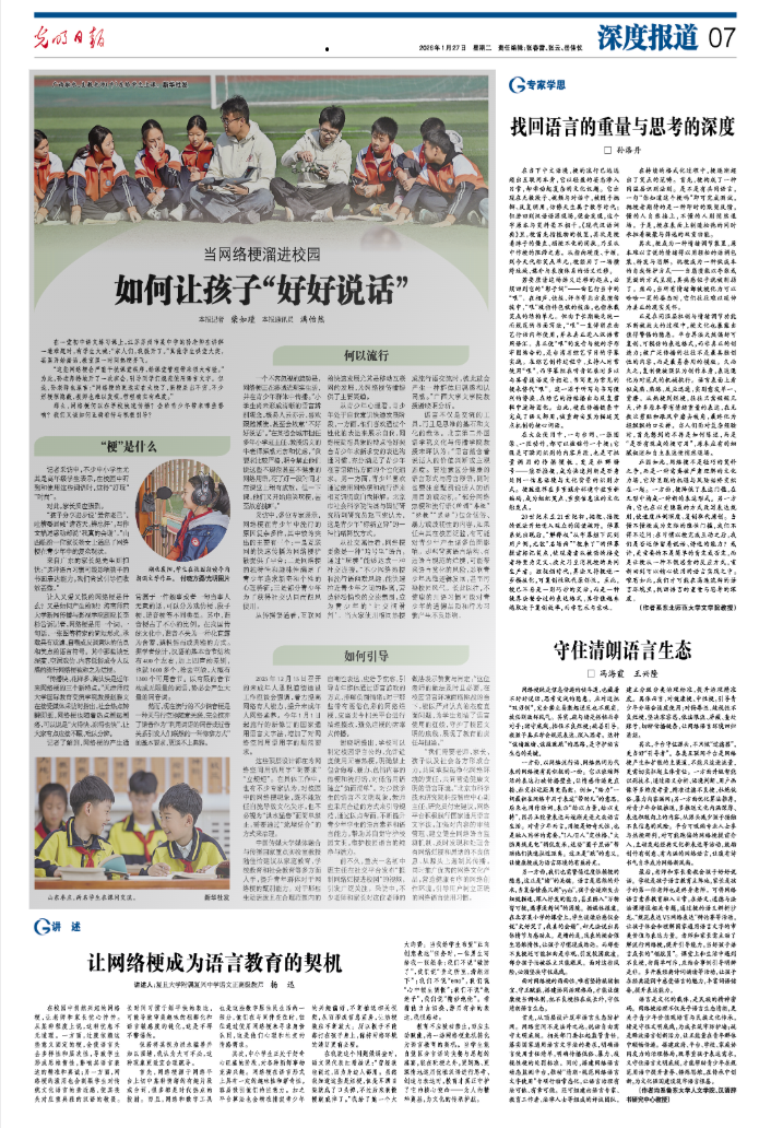 “我们需要老师、家长、孩子以及社会各方形成合力,共同承担起净化网络环境的责任,共同营造健康文明的语言环境。”北京市科学技术研究院科技智库中心副主任、研究员付宏建议,网络平台积极践行国家通用语言文字法,加强对内容的审核管理、建立健全网络语言监测机制、及时发现和处理含有网络烂梗和黑话的不良信息、从源头上遏制其传播。同时推广优秀的网络文化产品,营造健康有序的网络创作环境,引导用户树立正确的网络语言使用习惯。