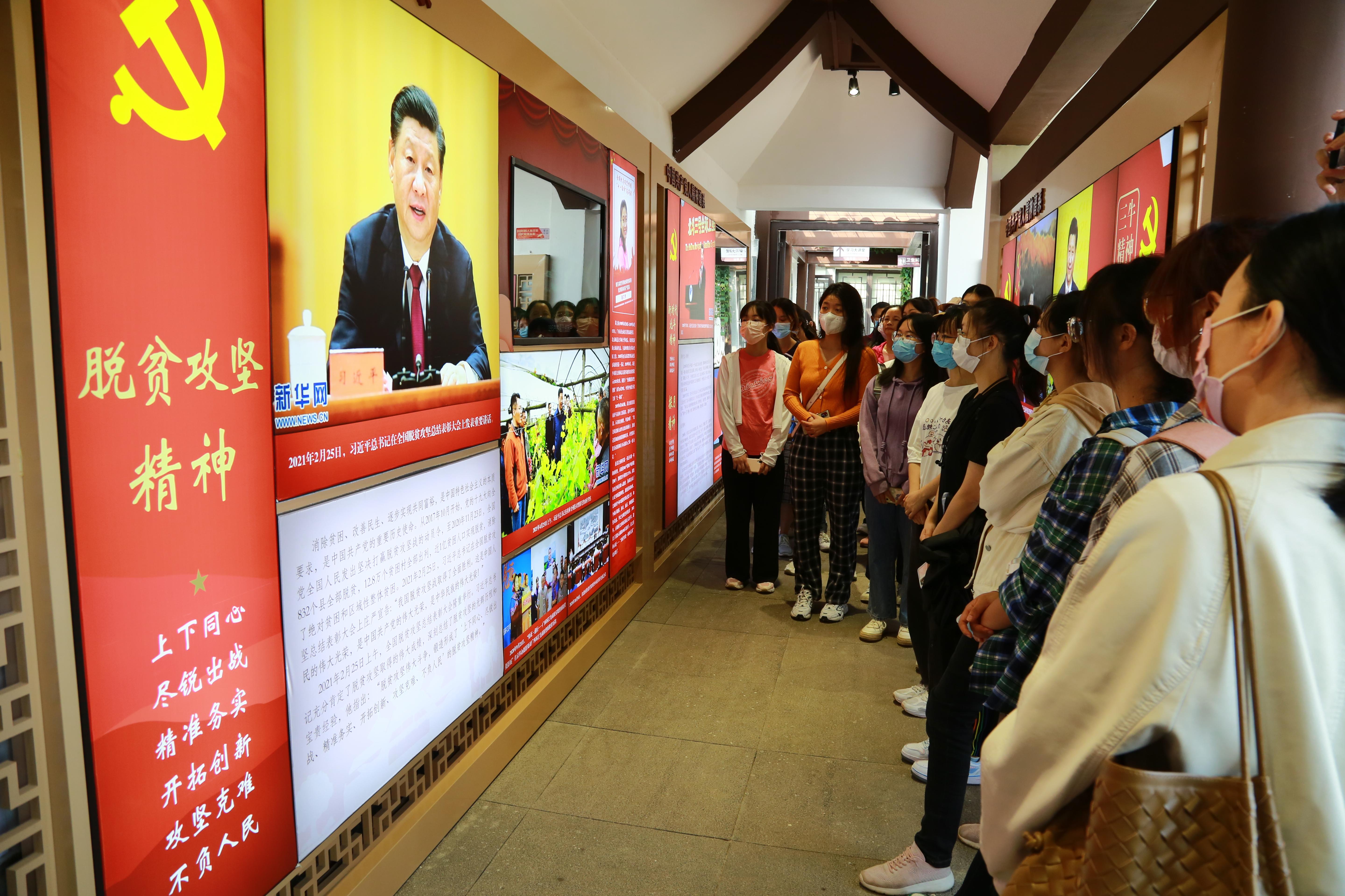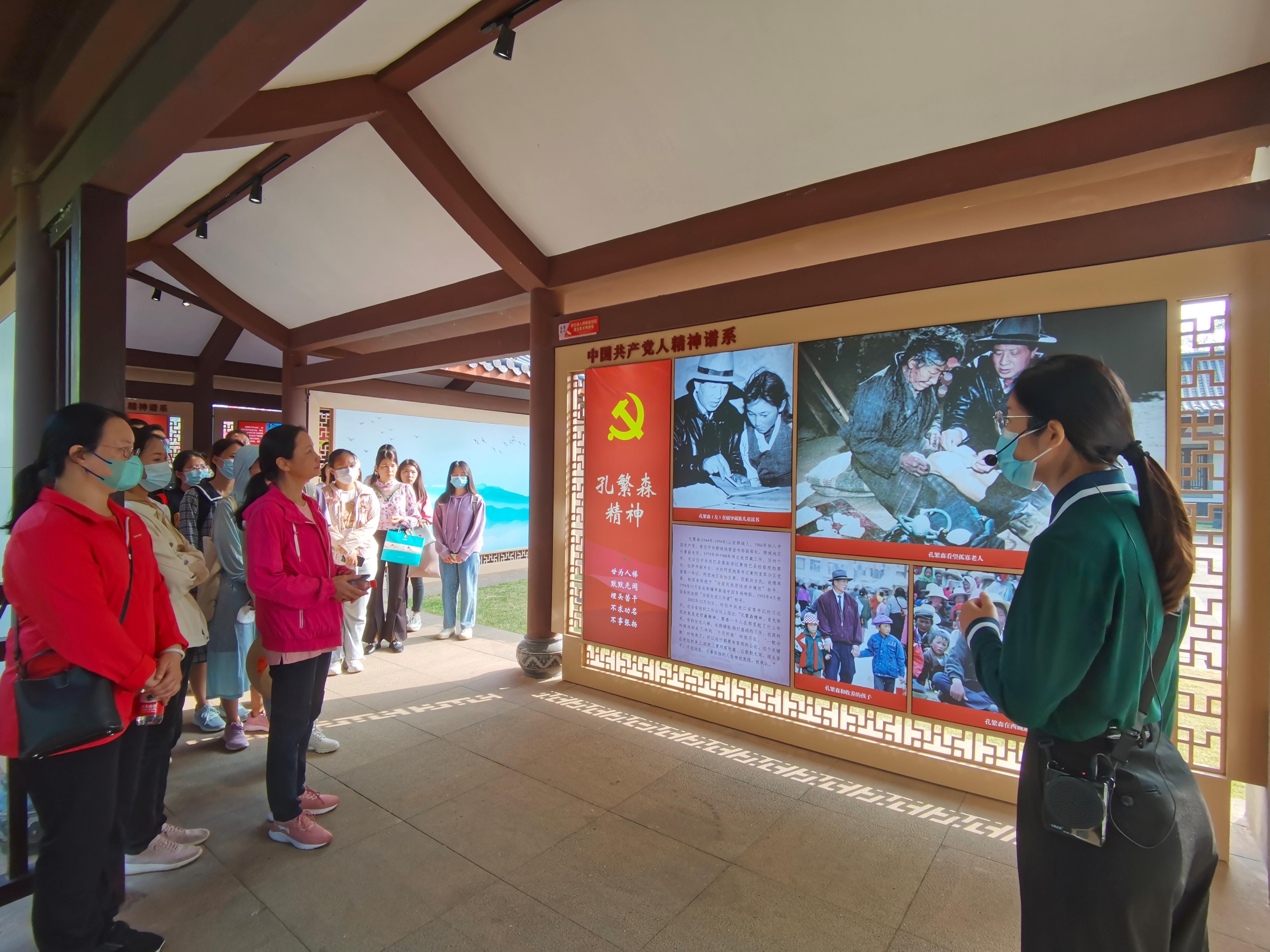走进中国共产党人精神谱系主题园,如同步入一条“时空隧道”,身临其境地感受到历史的厚重。跟随讲解员,师生们依次参观主题园的“两厅一廊一馆”,通过互动点播屏、全息投影系统、720度环绕虚拟漫游液晶屏、虚拟翻书系统等声光电高科技展示设施,对中国共产党在新民主主义革命时期、社会主义革命和建设时期、改革开放和社会主义现代化建设新时期以及中国特色社会主义新时代所形成的建党精神、长征精神、抗美援朝精神、焦裕禄精神、载人航天精神、脱贫攻坚精神、抗疫精神等27种伟大精神进行了沉浸式学习和体验。师生们边走边看边听边学,重温中国共产党的百年光辉历程和伟大成就,从百年党史和中国共产党人精神谱系中汲取廉洁自律、清正奉公的强大力量。