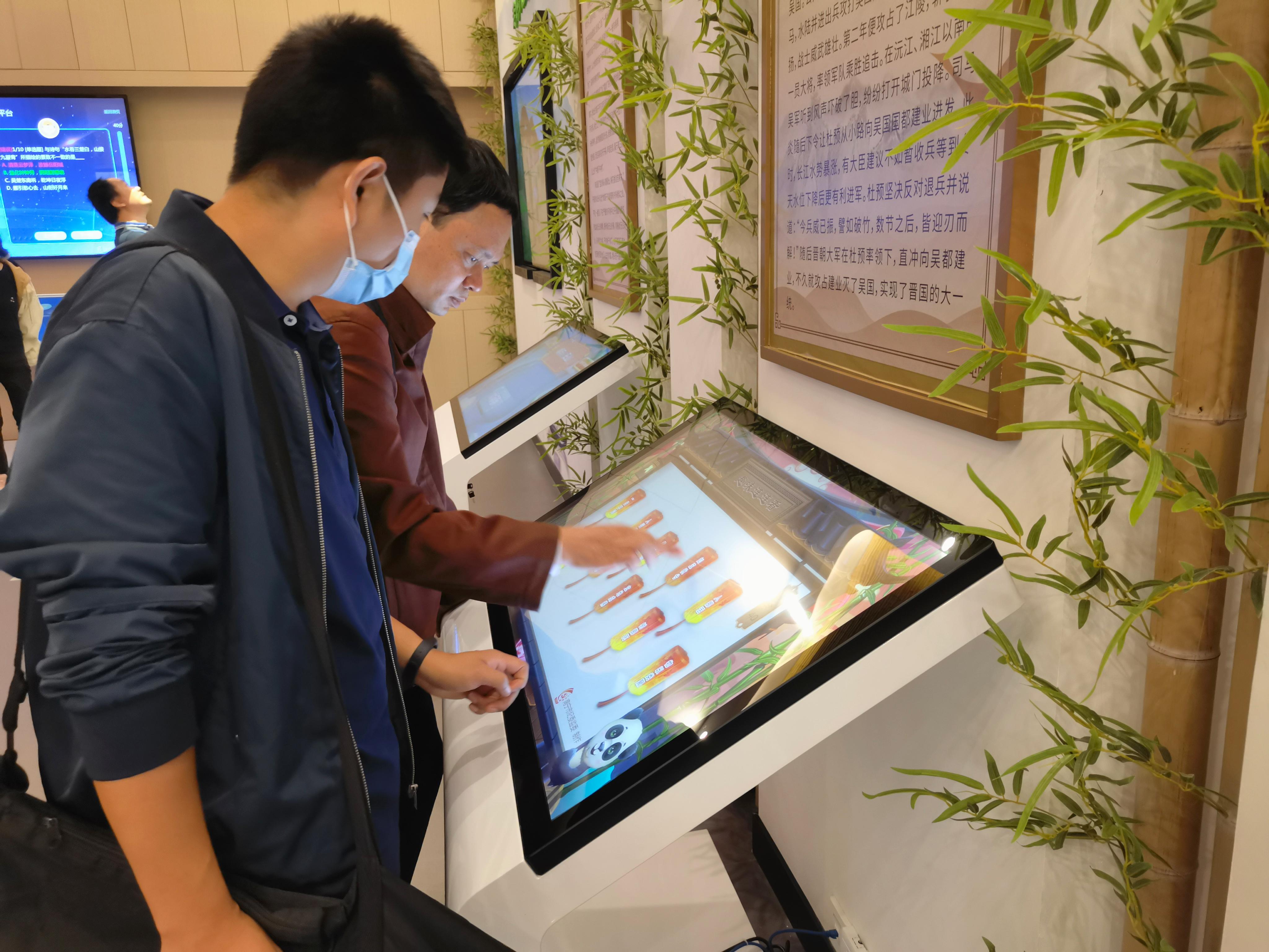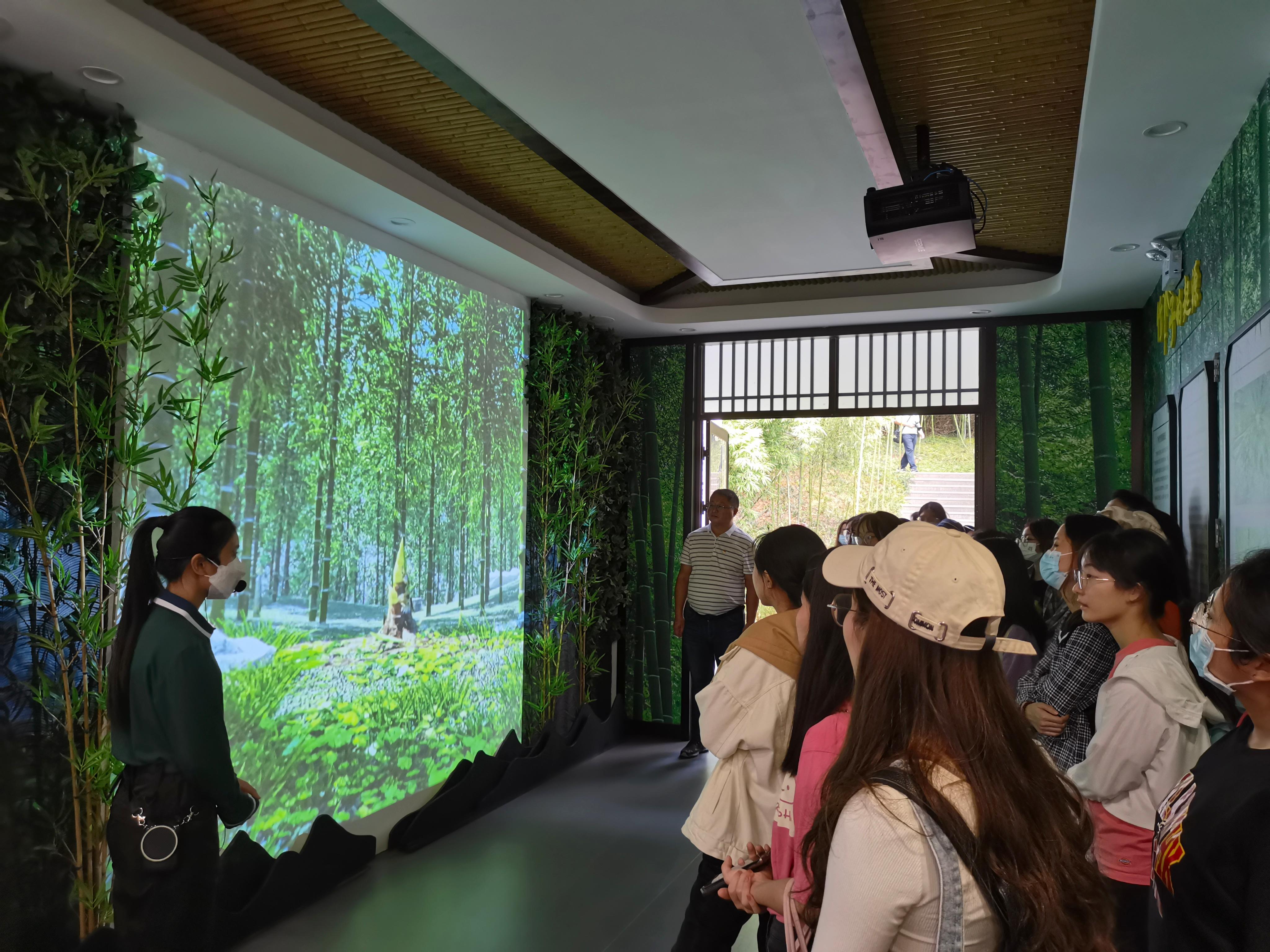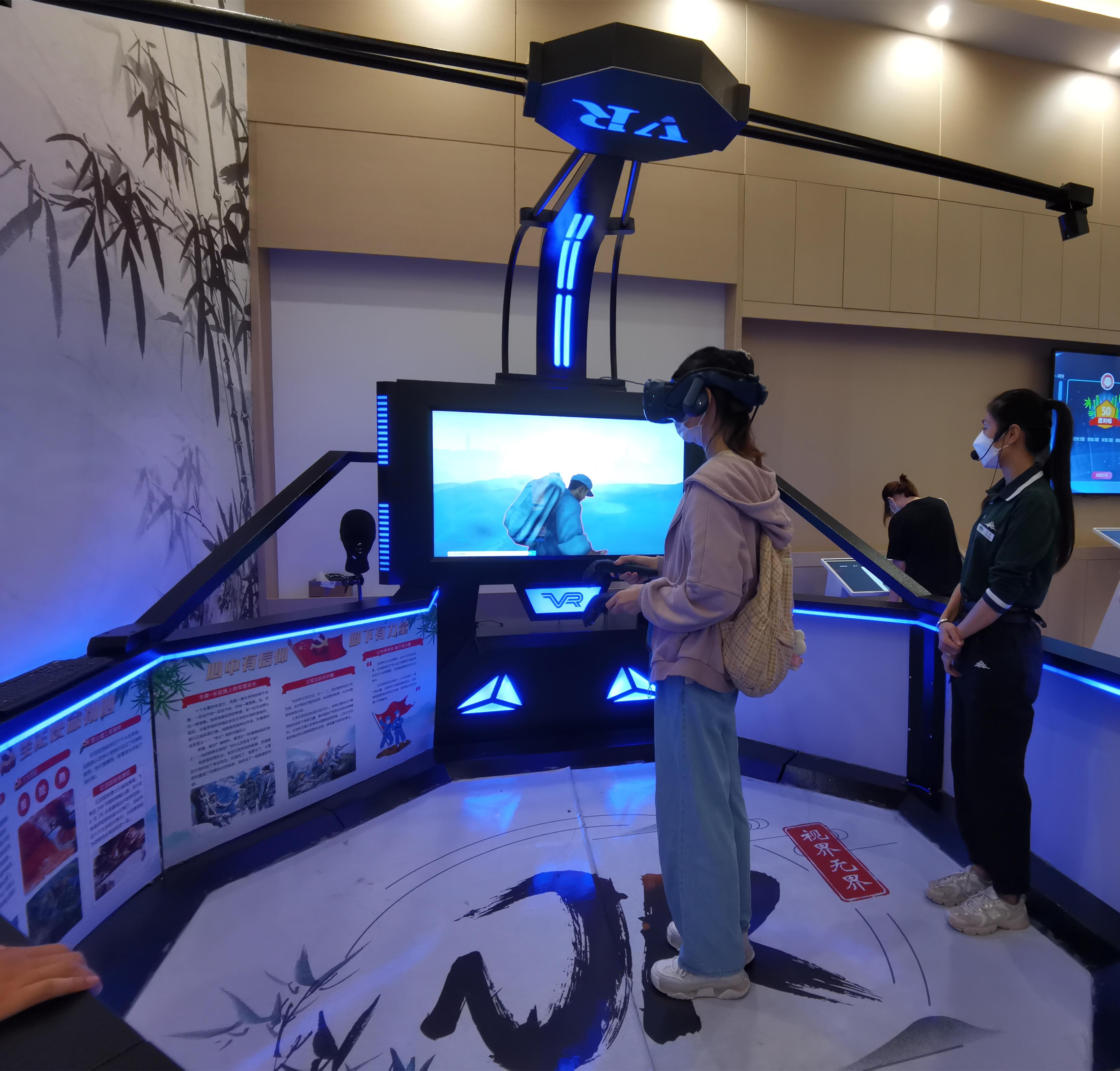 竹园室内的竹展馆,有与竹子有关的多种实物展示,有运用3D仿真、虚拟漫游、VR设备相结合的红军长征情景模拟游戏,廉政知识对战,触摸式廉政警示墙等等,师生们可以在游戏中体验、在体验中感悟、在感悟中提升。