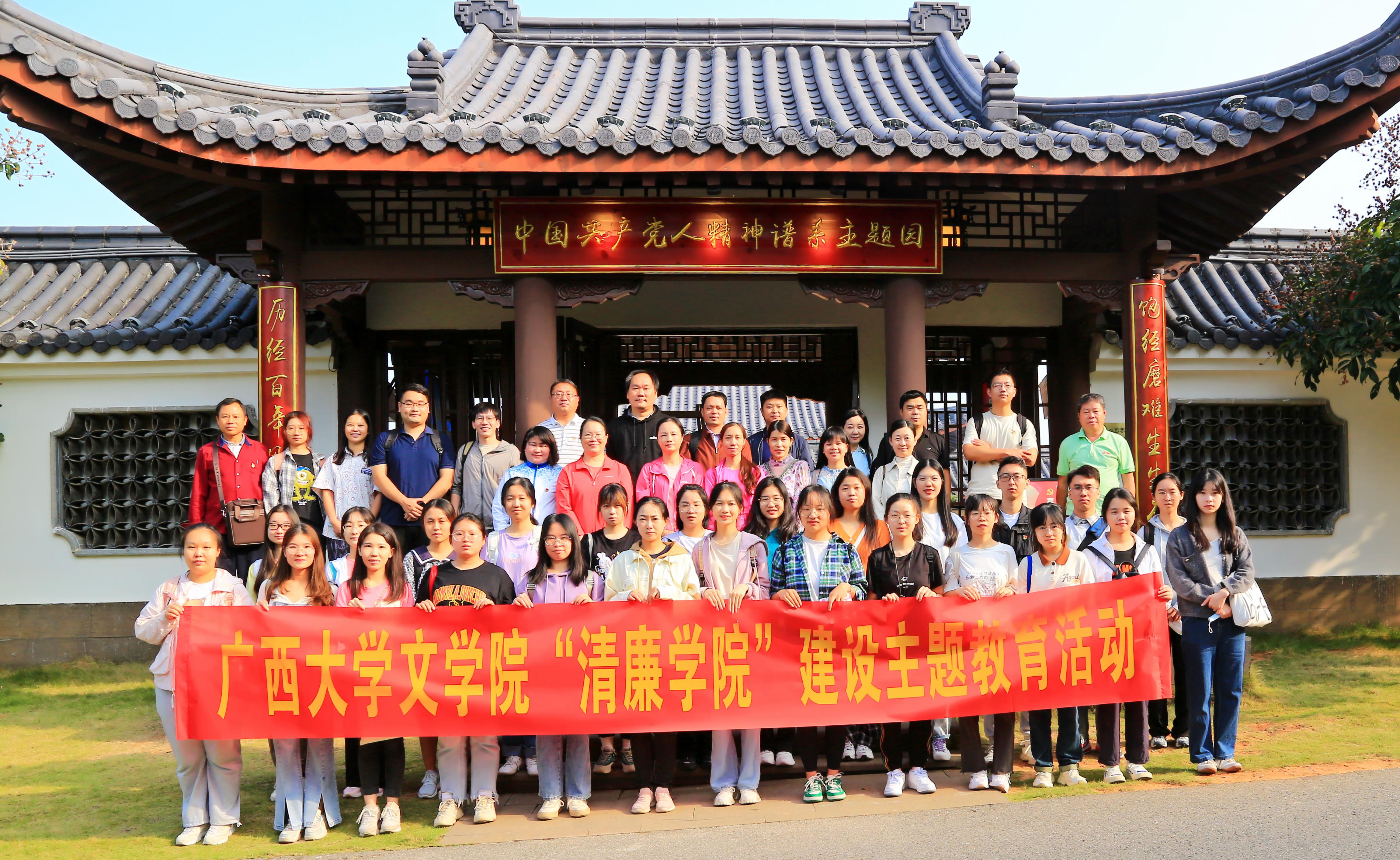 活动在南宁市青秀山“大思政课”实践教学基地开展,包含中国共产党人精神谱系学习和廉洁文化学习两个部分的学习内容。